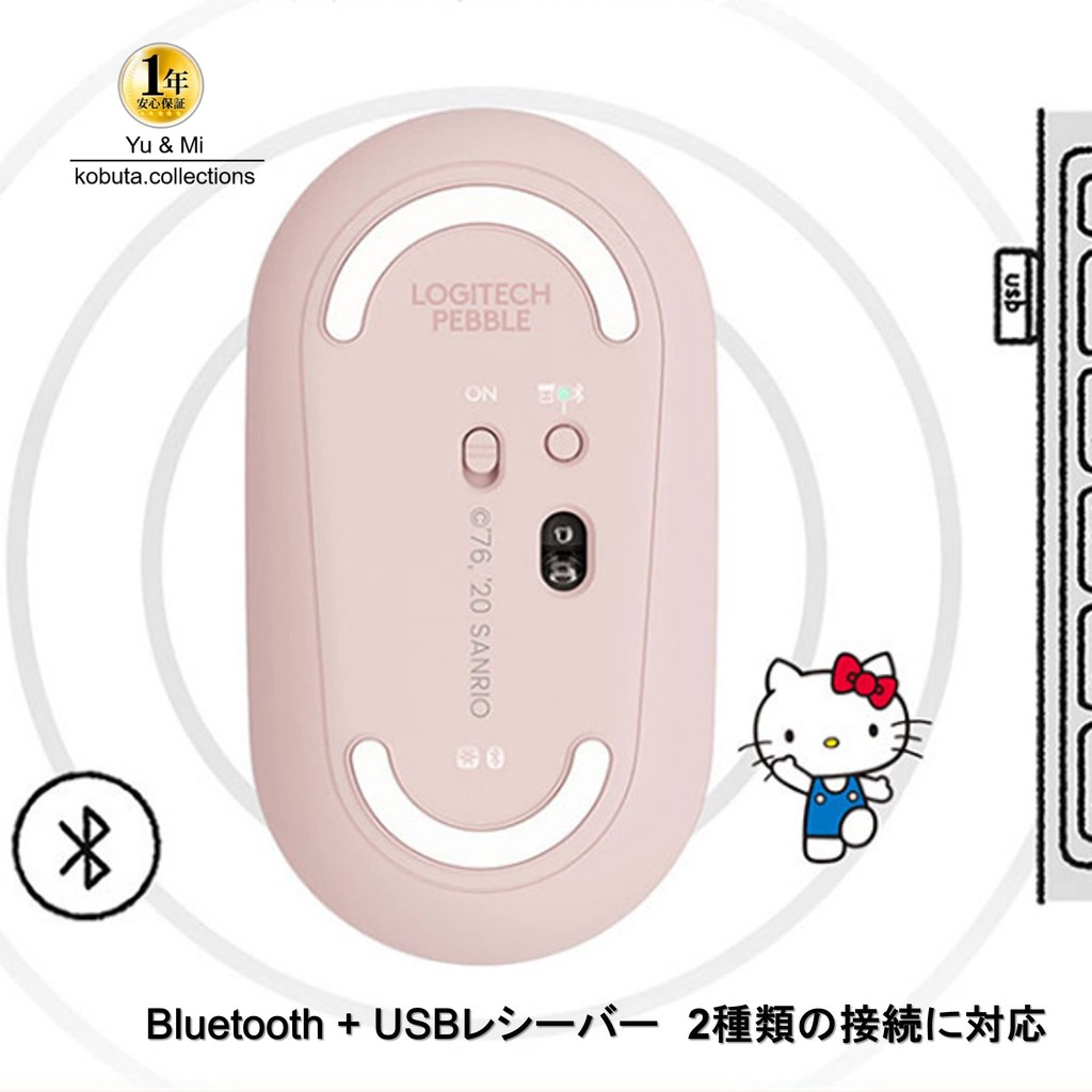 Logitech Hello Kitty Cute Slim Lightweight Silent Wireless Mouse Bluetooth Multi-Device Compatible Compact Energy-Saving Optical with kobuta Product Product Overseas Packaging Pink