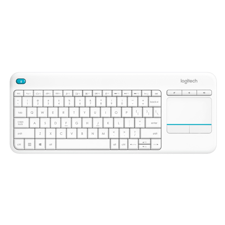 Logitech K400 Plus Wireless Livingroom Keyboard with Touchpad,Customizable Multi-Media Keys - White