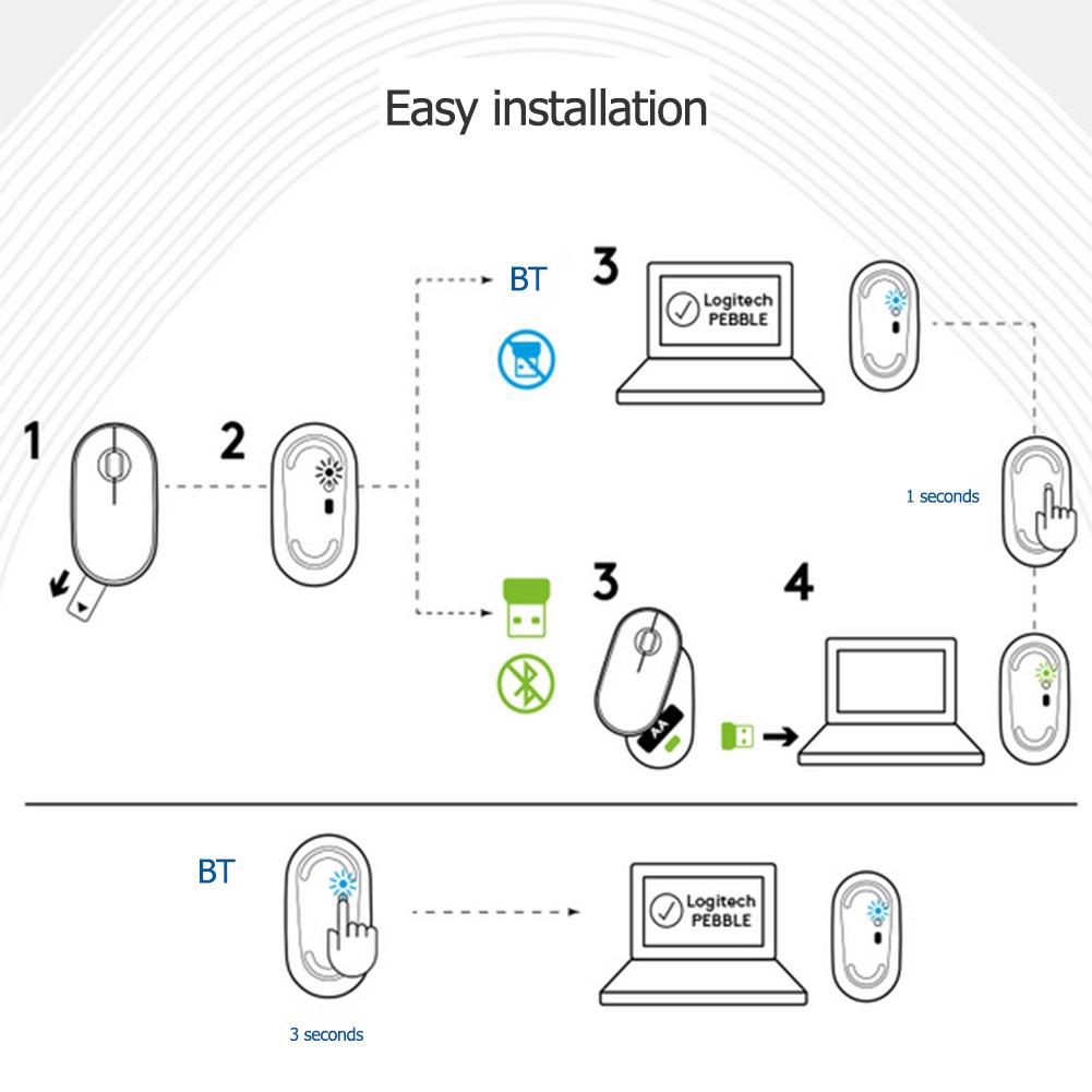 Logitech Pebble Wireless Mouse Bluetooth + 2.4GHz USB Receiver Dual-connectivity Silent 1000DPI Mouse for PC Computer