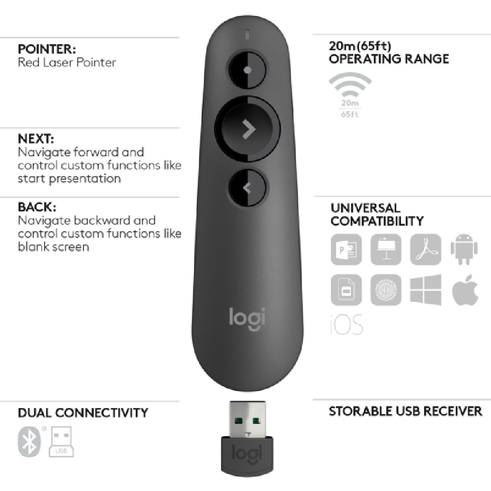 Logitech R500 Wireless Laser Presenter | 1 Year Warranty