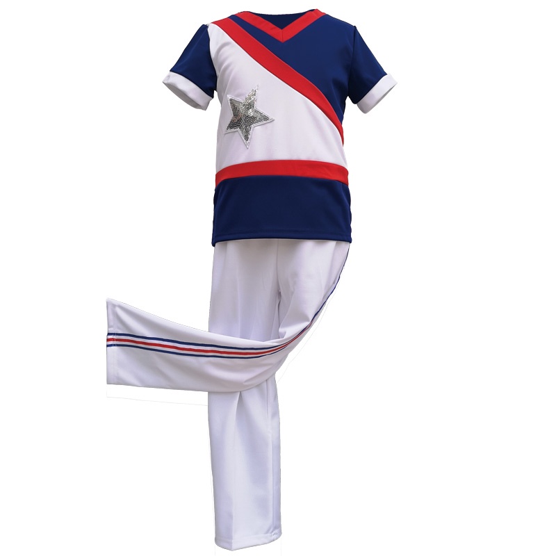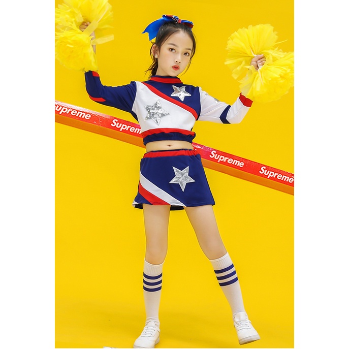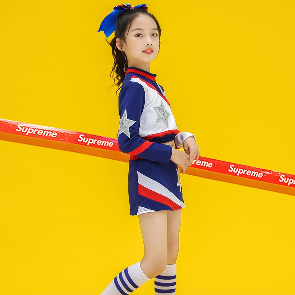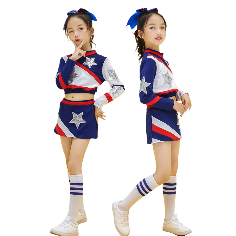 Lolanta Kids Cheerleader Uniform School Blue White Cheerleading Outfit Children Jazz Street Sequins Dance Costume Crop Top Plus Skirt Set Carnival Activities Performance Outfits 5-14 Years