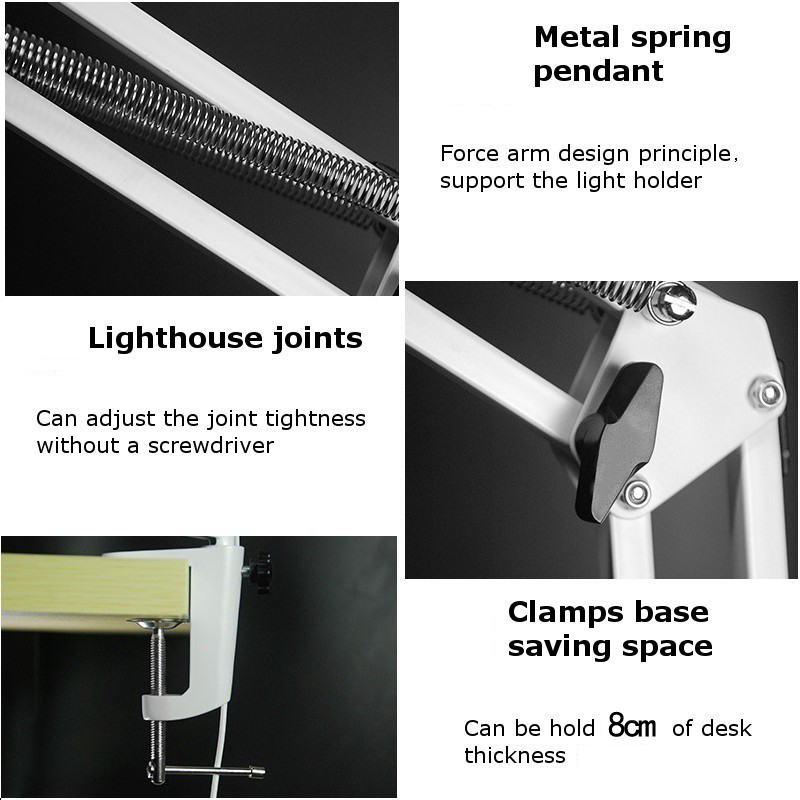 Long Arm Desk dimming LED Lamp Work Reading Folding Clip-on Tri-tone Foldable light Architect Desk Lamp Metal Swing Arm