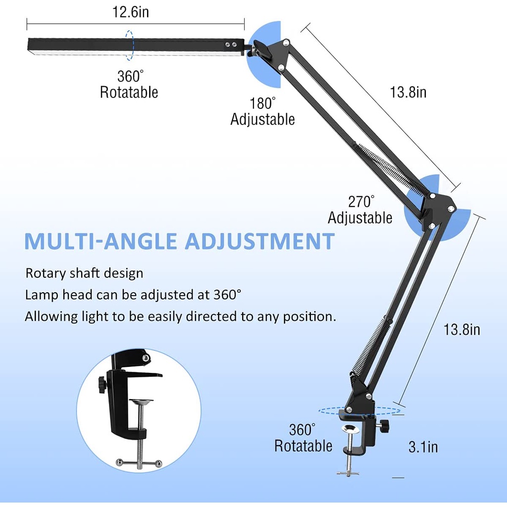 Long Arm LED Desk Lamp Desktop Clip-on Desk Lamp Dimmable Working Reading Desk Lamp