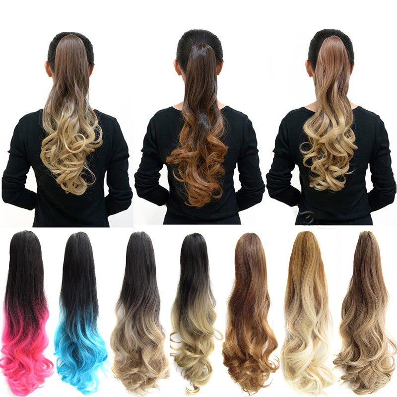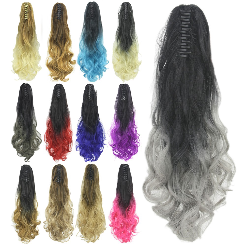 Long Curly Ponytail Wigs Claw Clip Hair Ombre Colour Hair Extensions Wigs