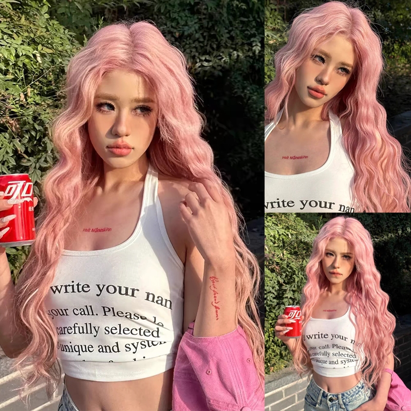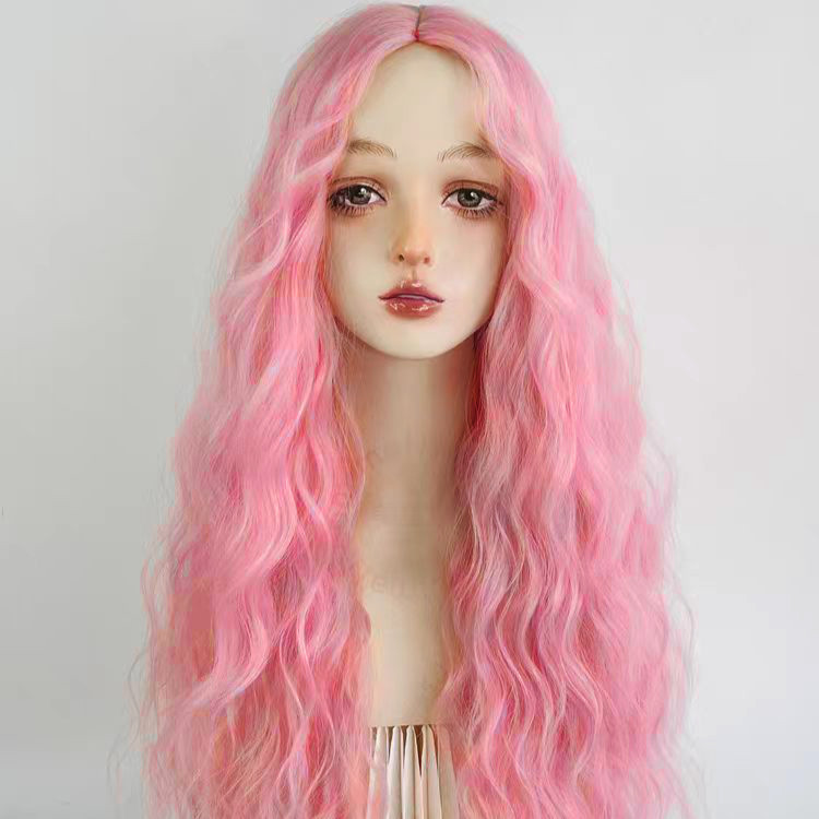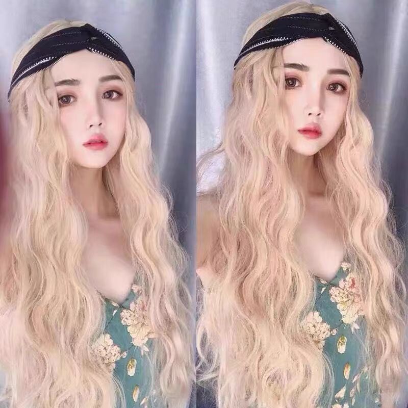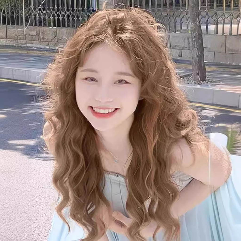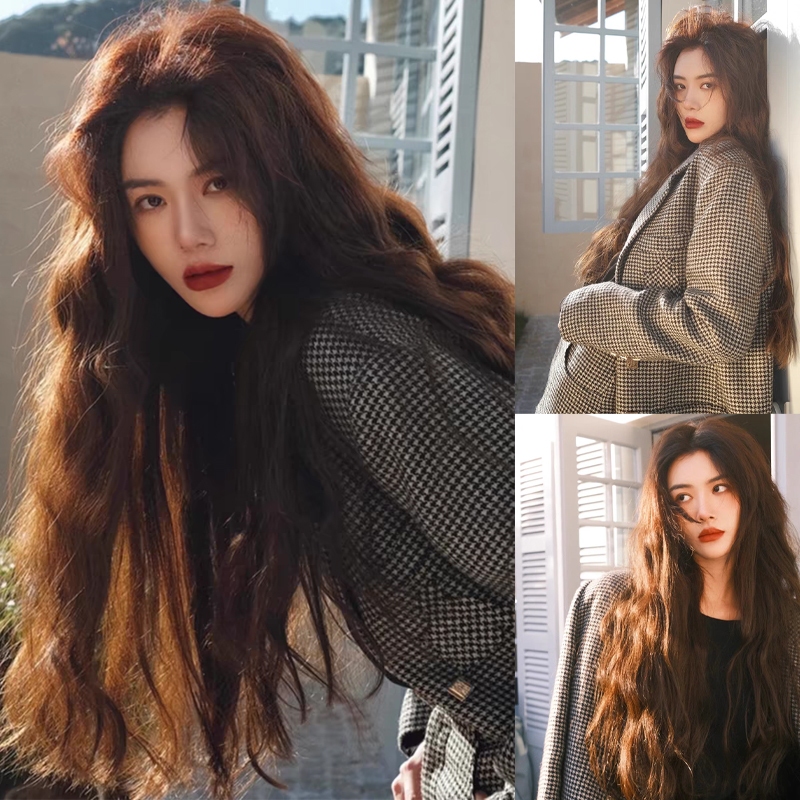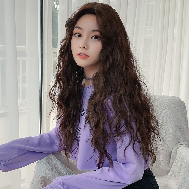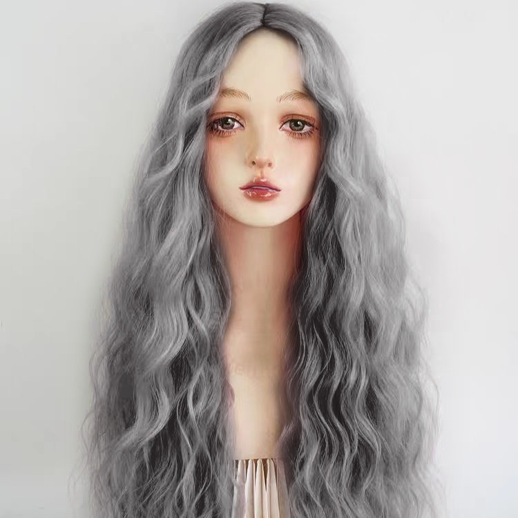 Long Curly Wig No Bangs for Women Fashion Korean Natural Full Head Wig Wool Roll Dark Brown Gray Wig