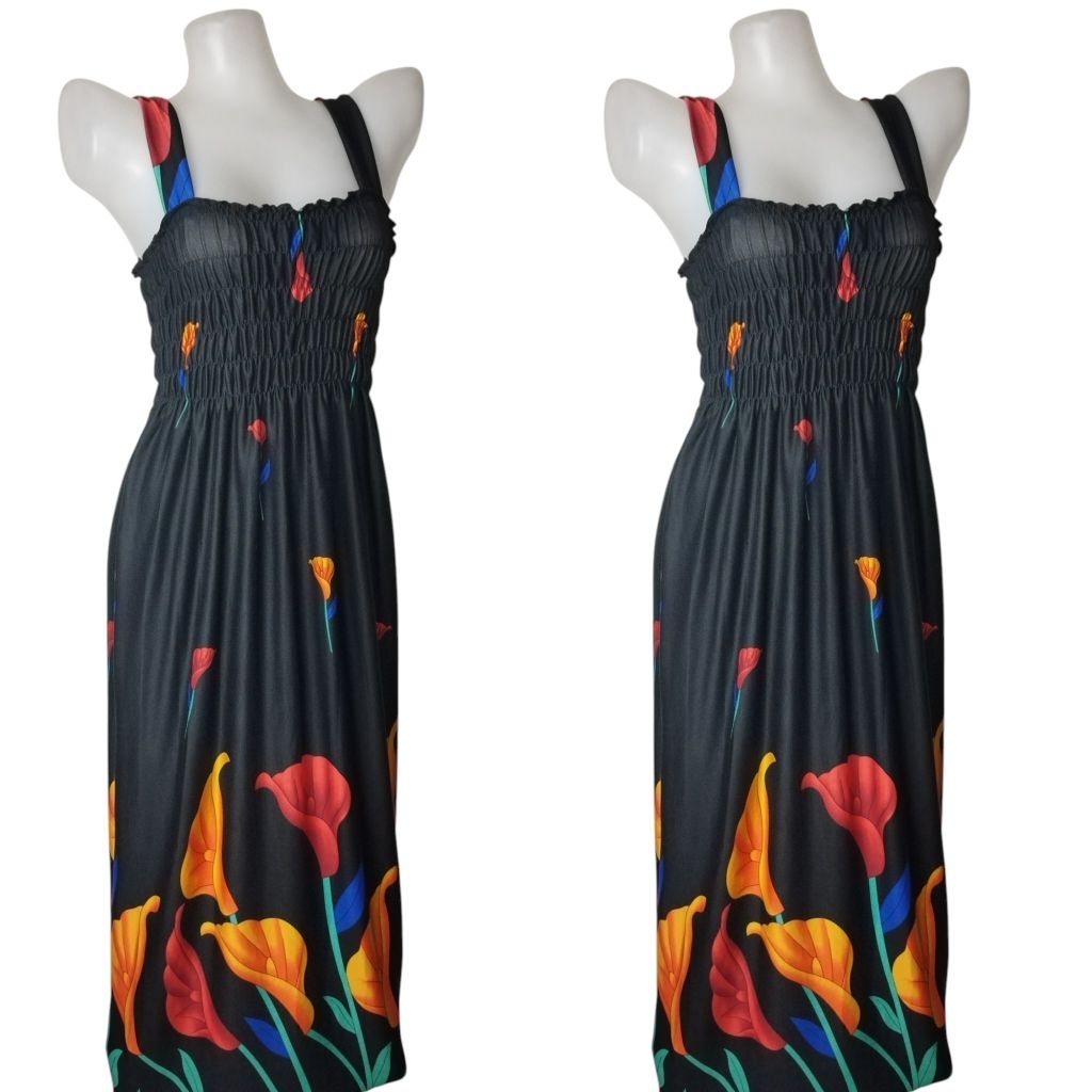 Long Dress | Spaghetti Dress | Daster | Flat Strap Duster | Fit to up XL Cotton spandex Stretchable