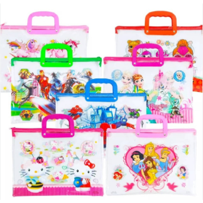 Long Plastic Envelope With Handle School Supplies With Design Characters, Flowers, etc