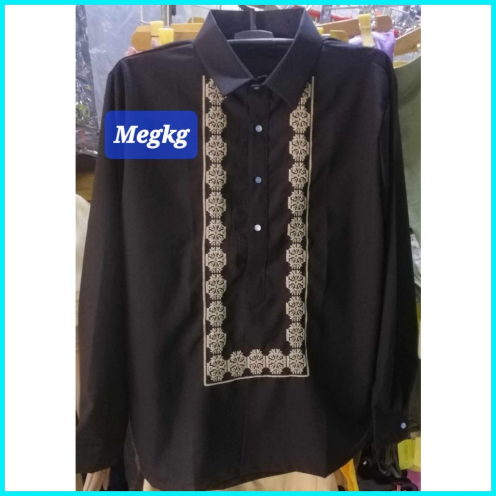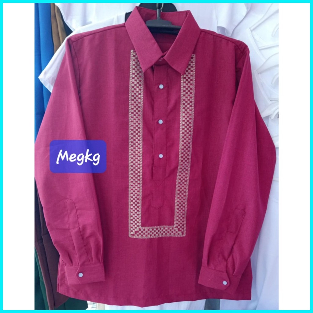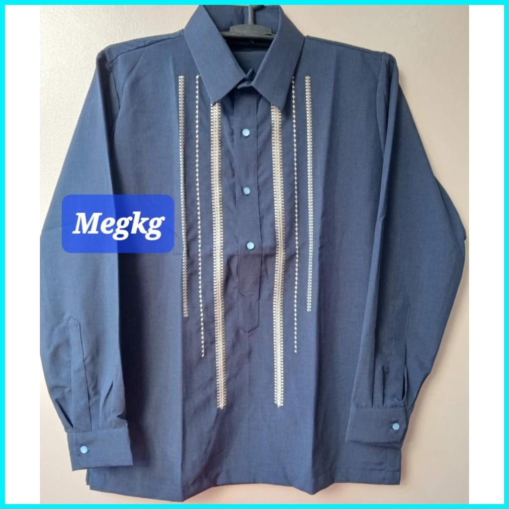 Long Sleeve Barong Computerized Embroidery with Elegant Random Design Makapal ang Tela