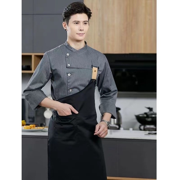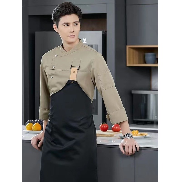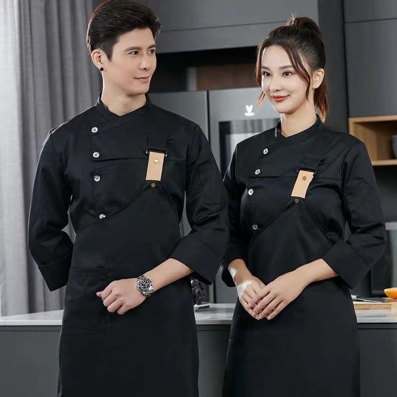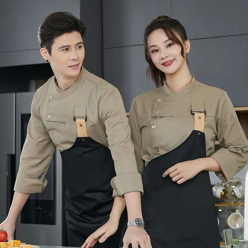 Long sleeve Chef Uniform Men Women Catering Restaurant Bakery Hotel Wiater Workwear Belt Apron Cooking Tops