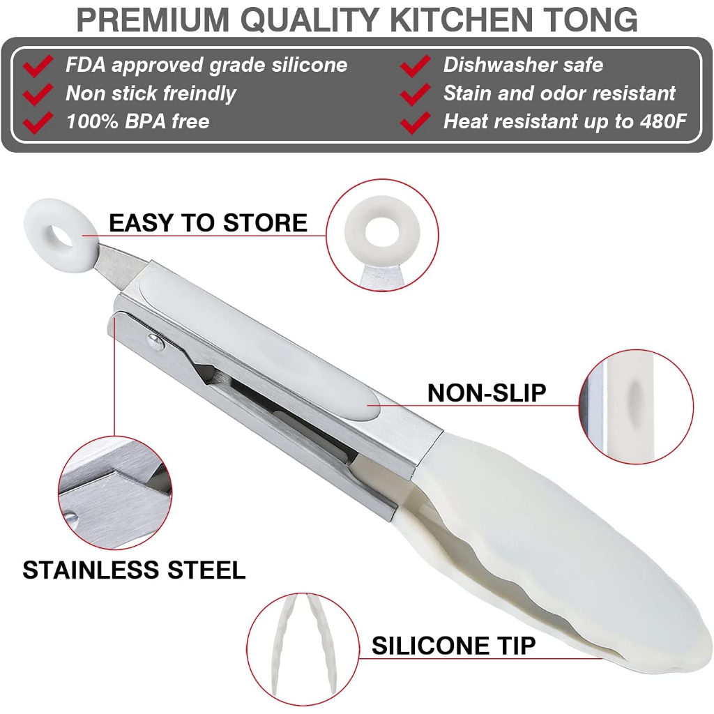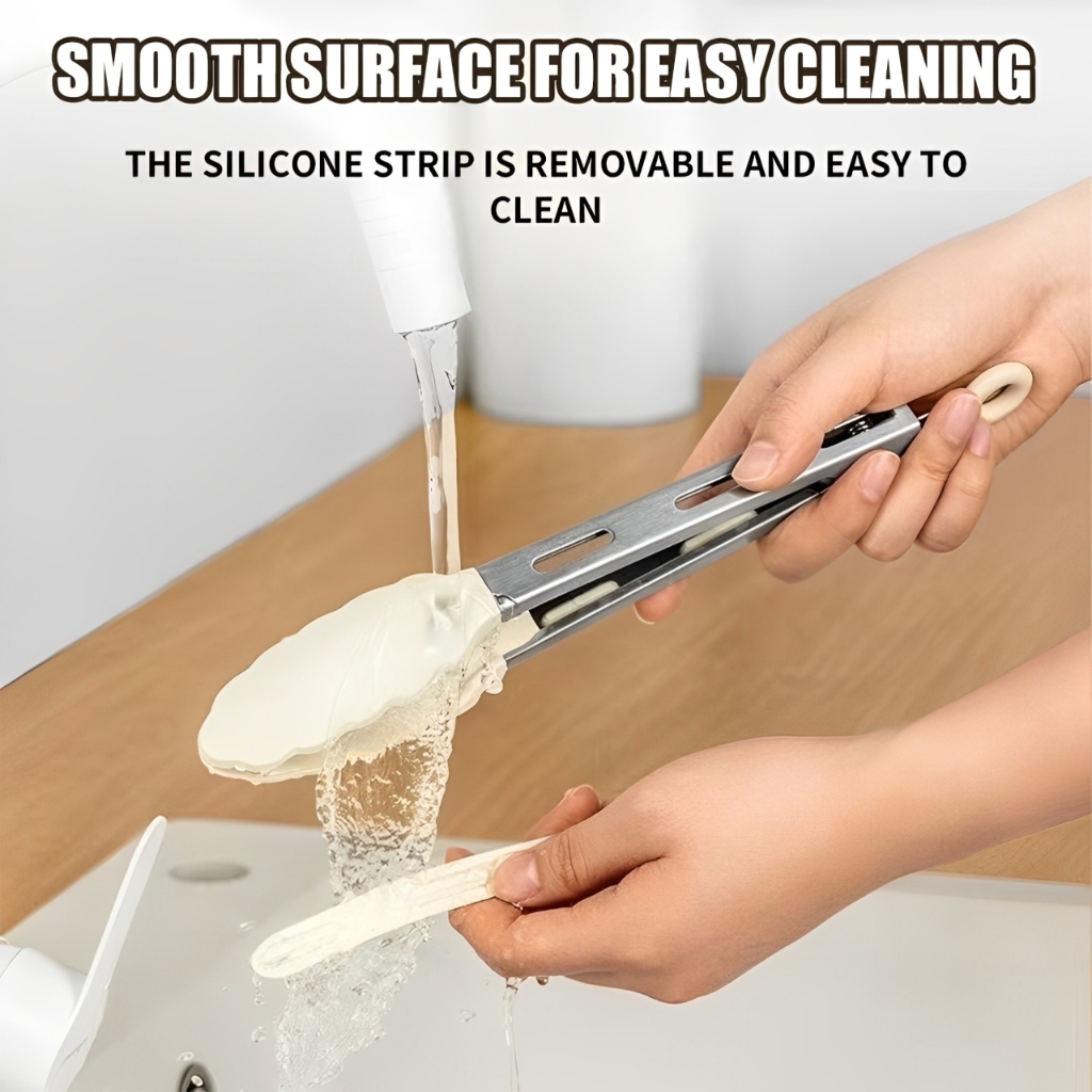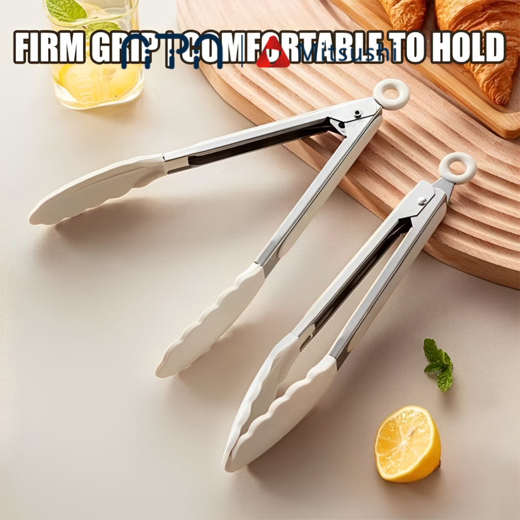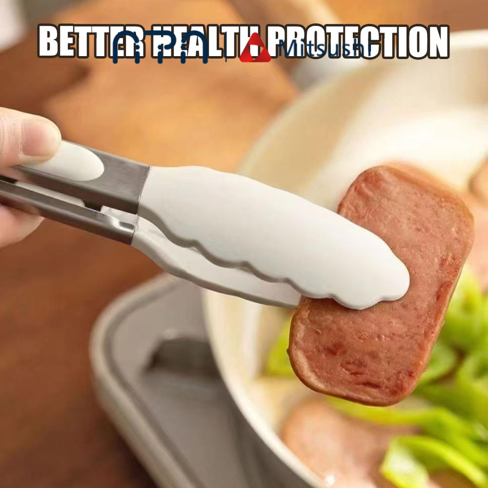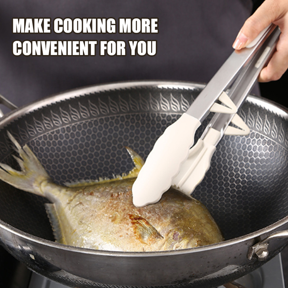 Nipiin Kitchen Silicone Food Tong Cooking Tongs BBQ Stainless Steel Handle Utensil Clip Non-stick