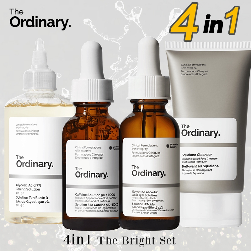 The ordinary set Squalane Cleanser+Caffeine serum+Vitamin C+Glycolic Acid 7% toner the Bright Set