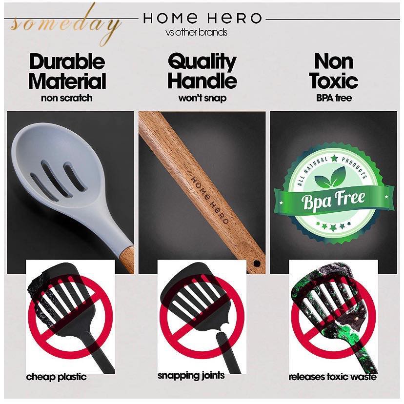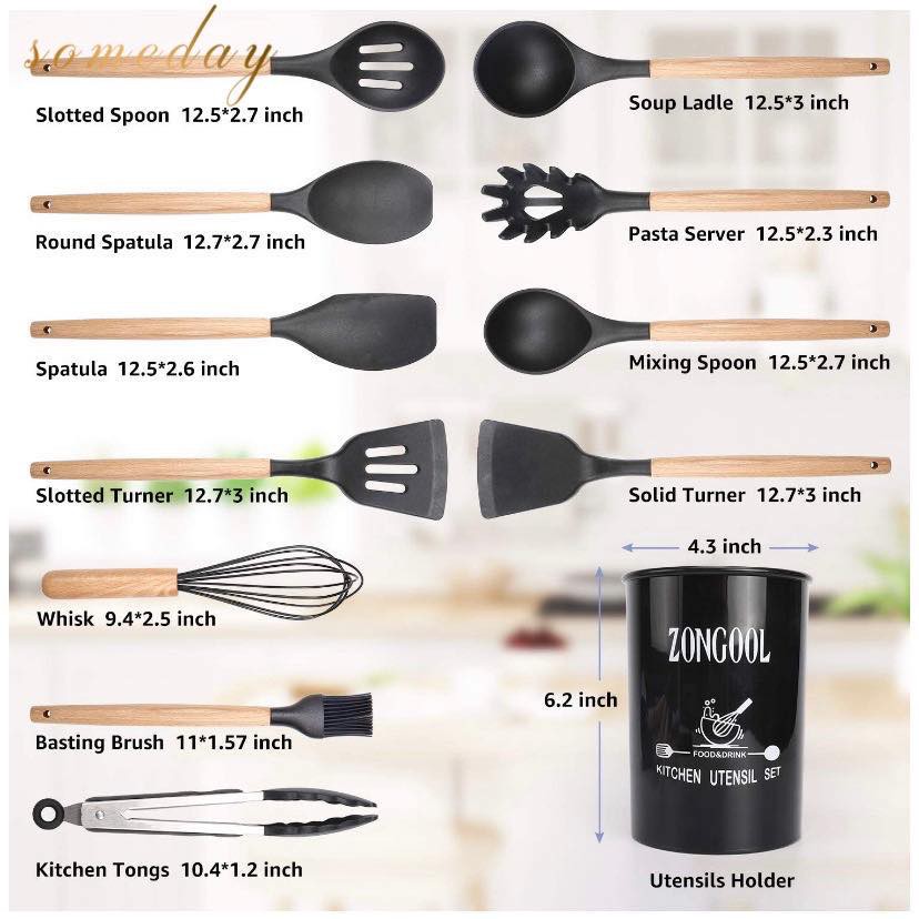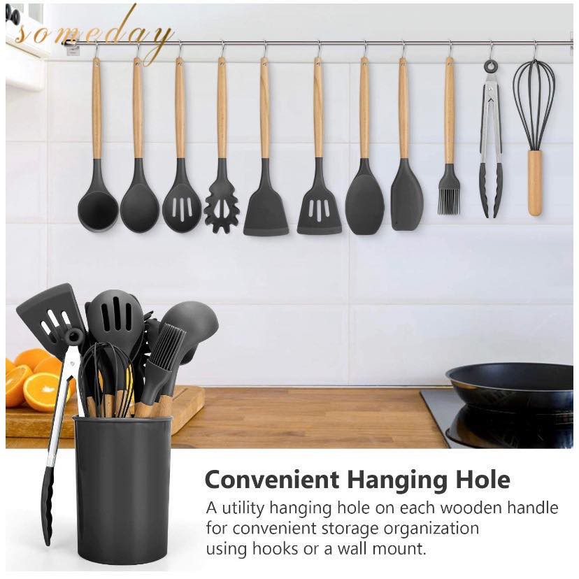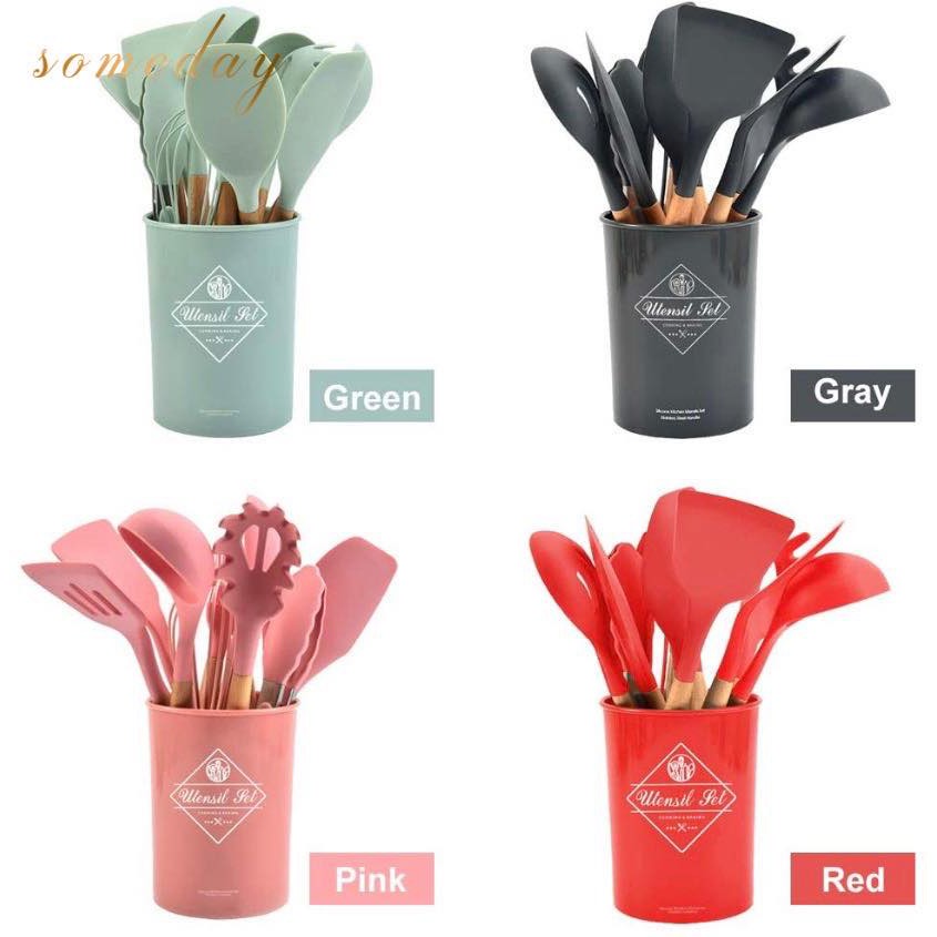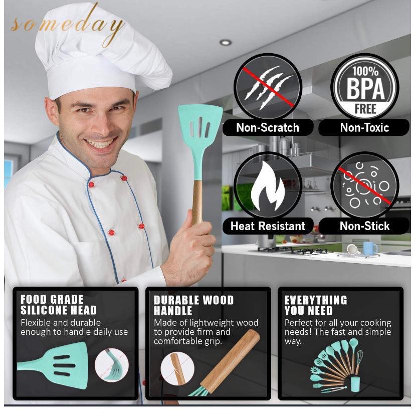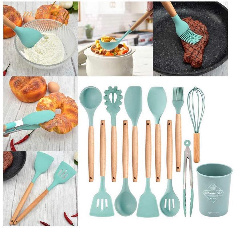 Someday 12-Piece Silicone Kitchen Utensil Set with Natural PP Handles – Non-Stick Cooking Shovels
