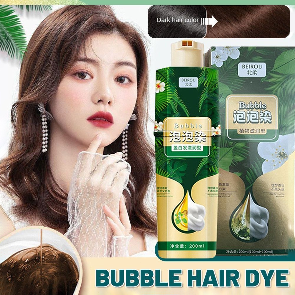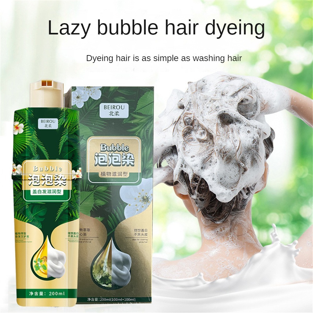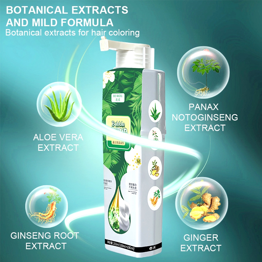 BEIROU Bubble Hair Dye Shampoo 200ml Natural Black Color Bubble Plant Hair Dye Natural Plant Extract