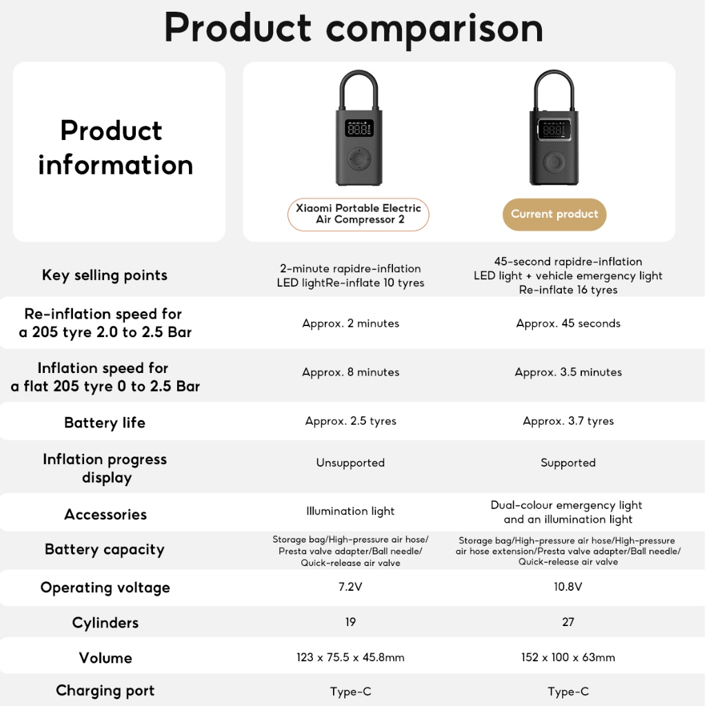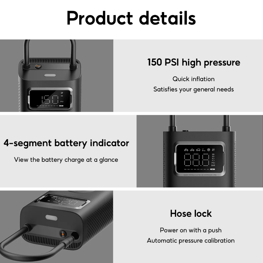 Xiaomi Air Pump 2 Pro EU Portable Electric Air Compressor 45-second Rapid Tyre Inflation