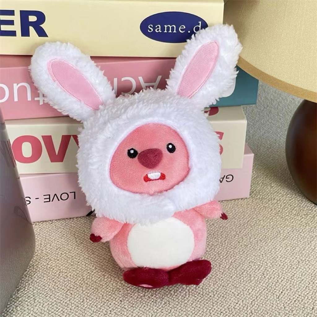 Loopy Plush Toy Cartoon Pororo Little Penguin Teddy Bear Pink Beaver Stuffed Plushie Doll Dressing Show Keychain Plush Pendant Doll Birthday Gift