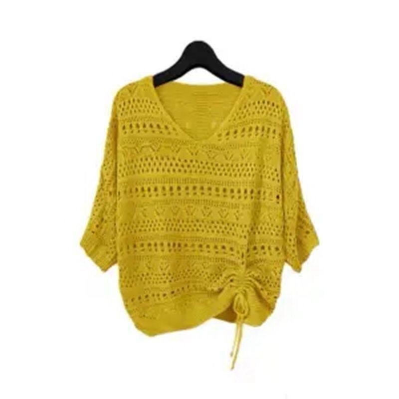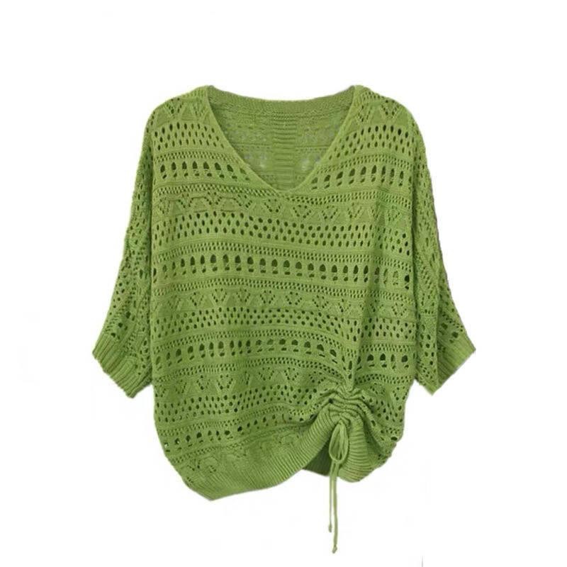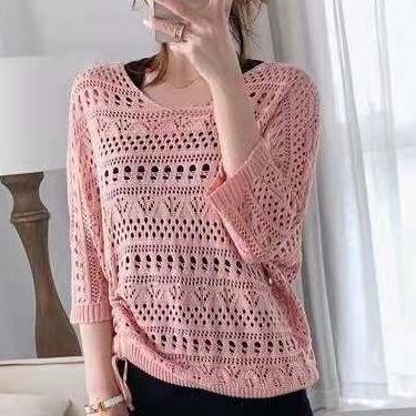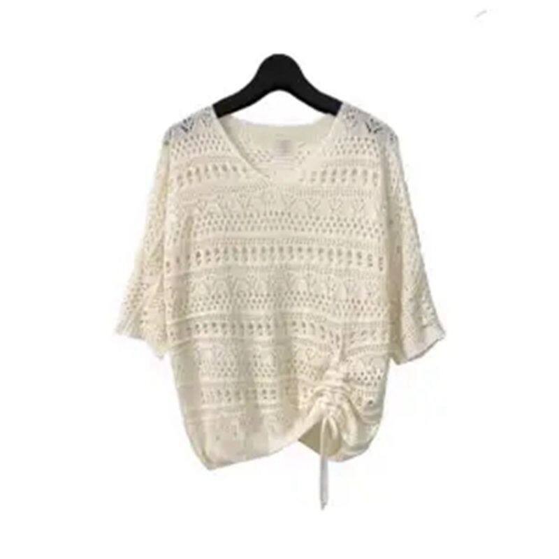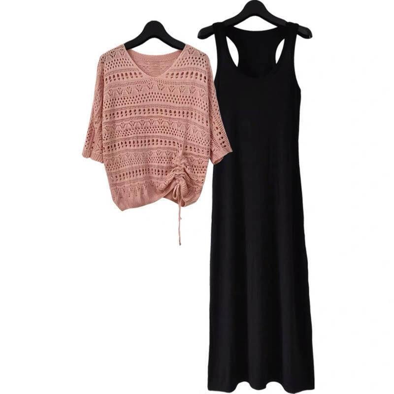 Loose Knit Blouse,Thin New Women'S Hollow Out Two Piece Dress,Bat Shirt Dress Set Long Skirt