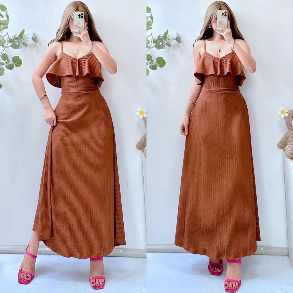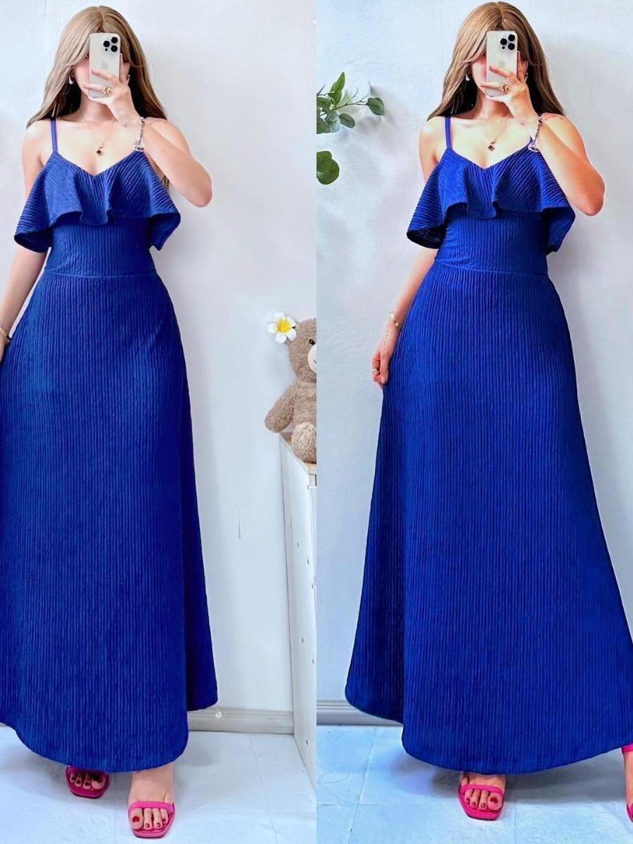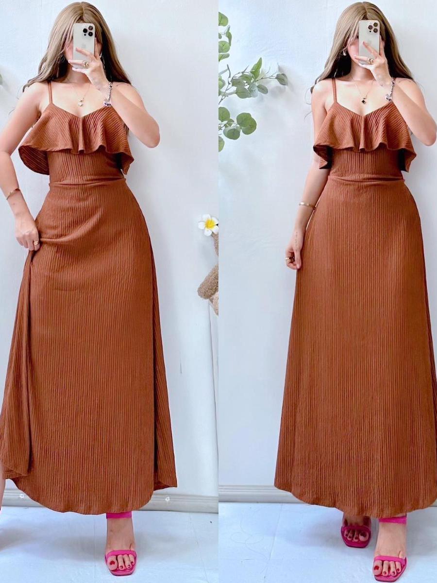 Lorien V Line Ruffle String Maxi Dress for Women - Casual Style - Womenswear