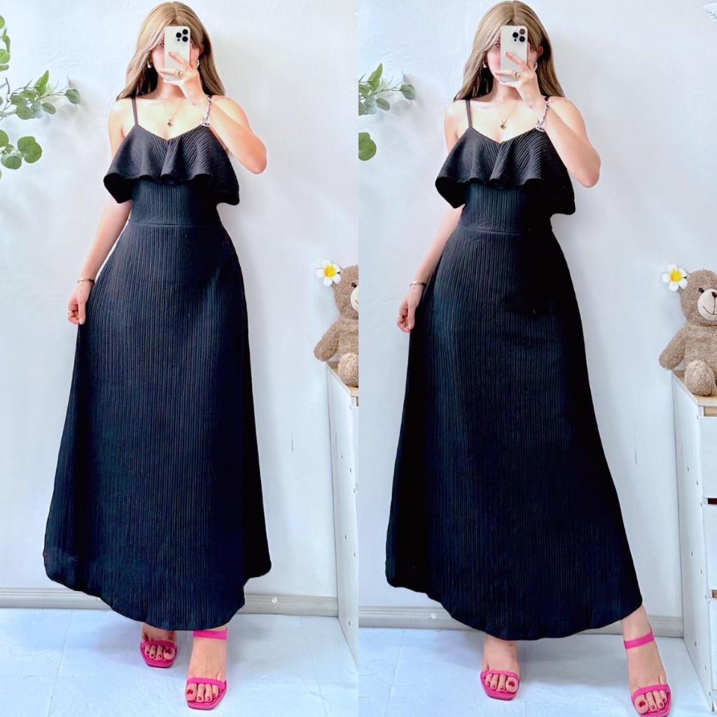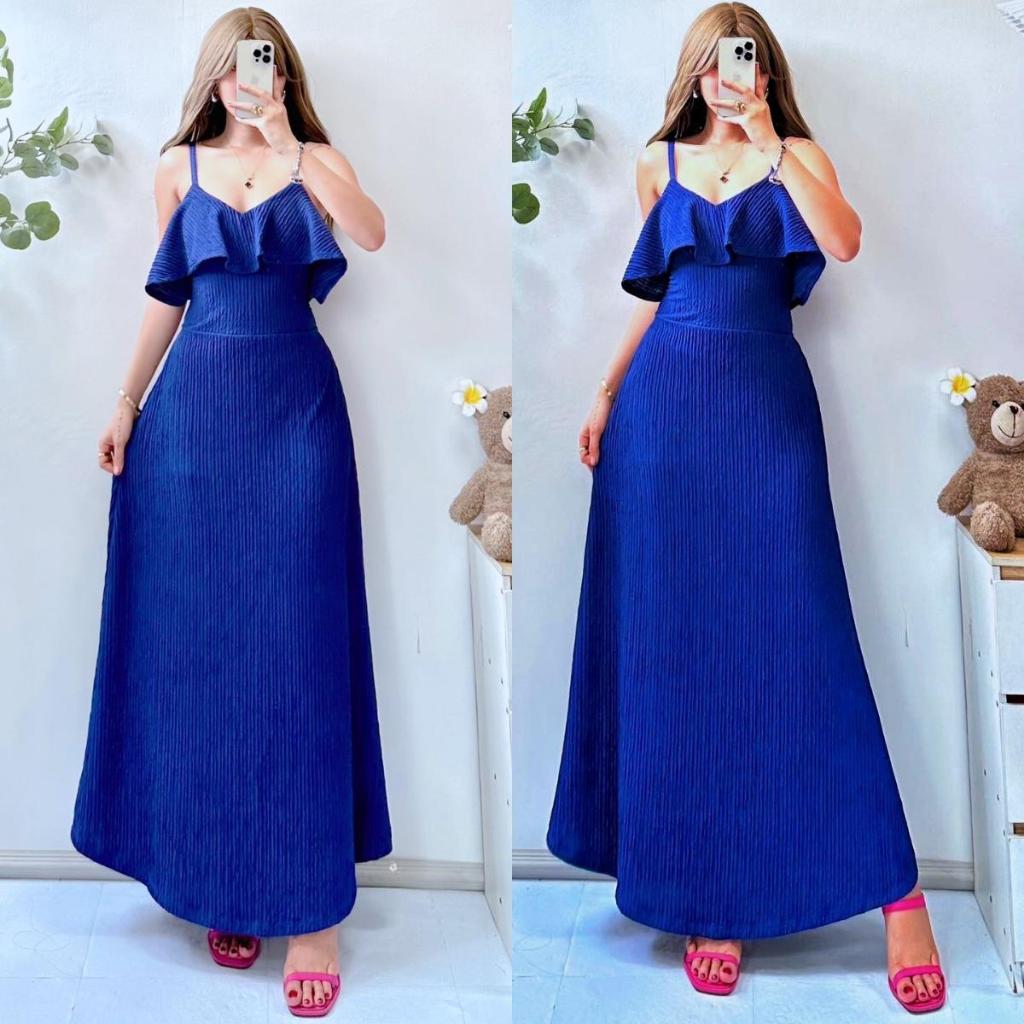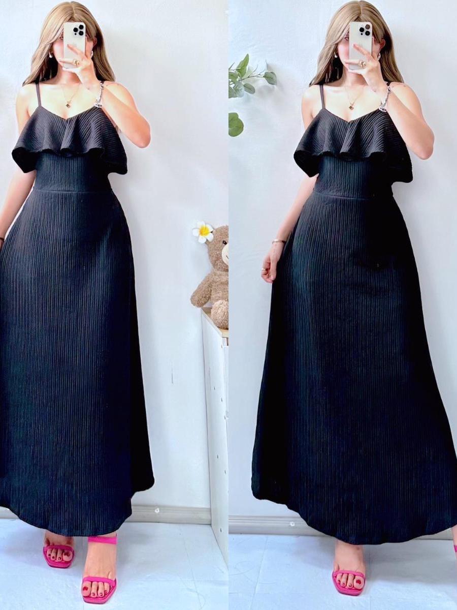Lorien V Line Ruffle String Maxi Dress for Women - Casual Style - Womenswear