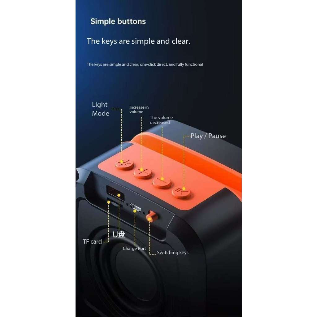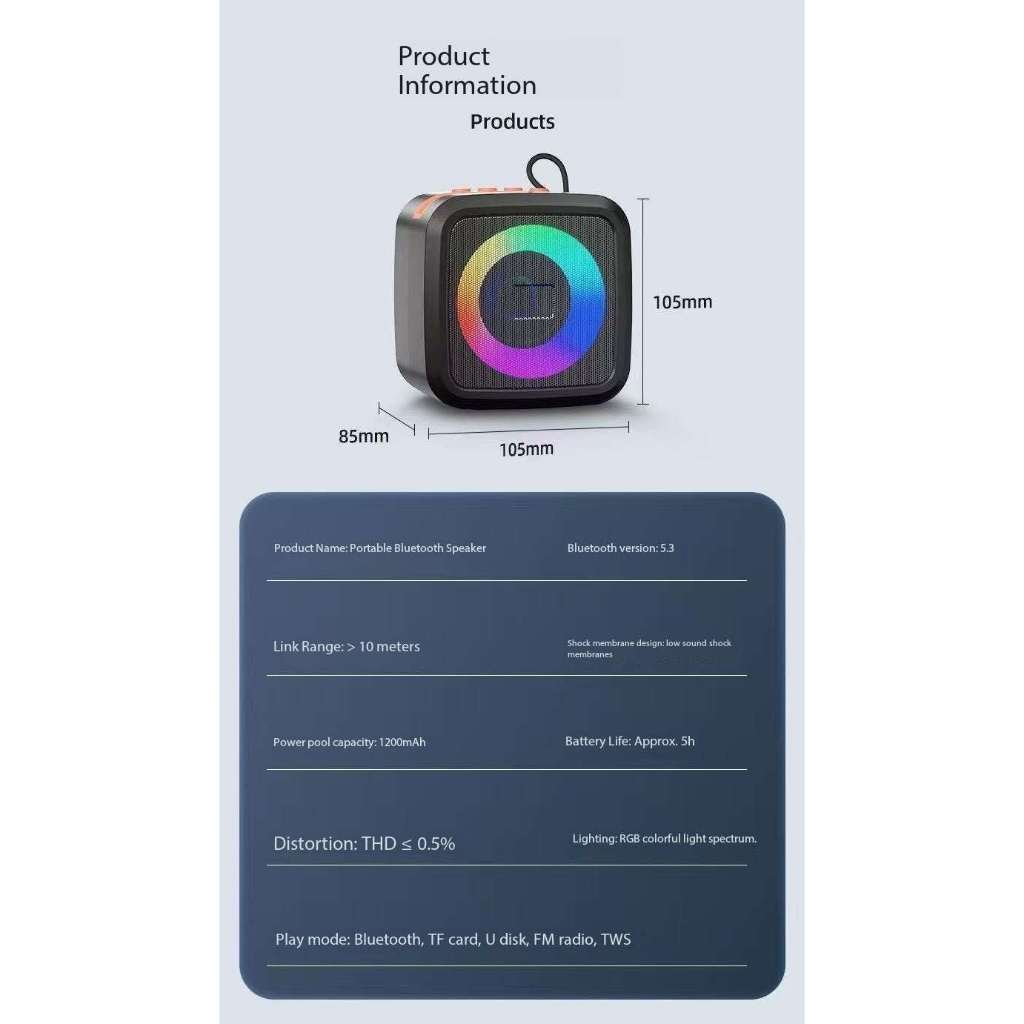 Loud Speaker Wireless Buetooth w/ RGB Light,FM Radio & Phone Holder/HandHeld