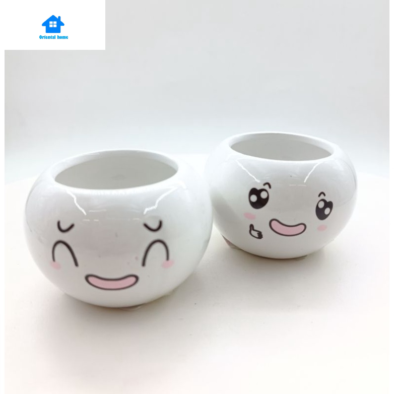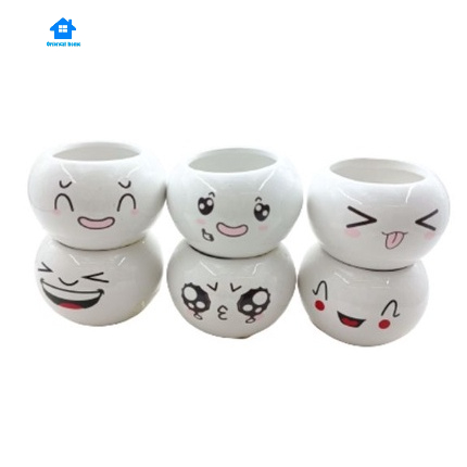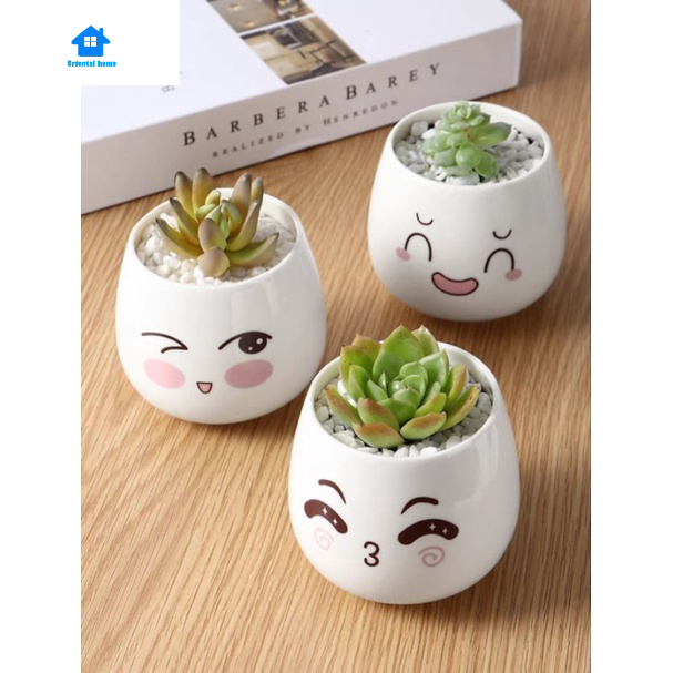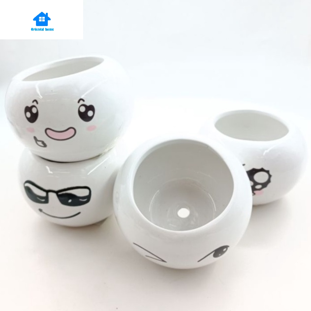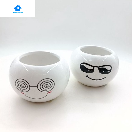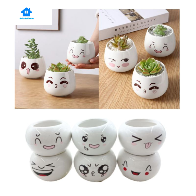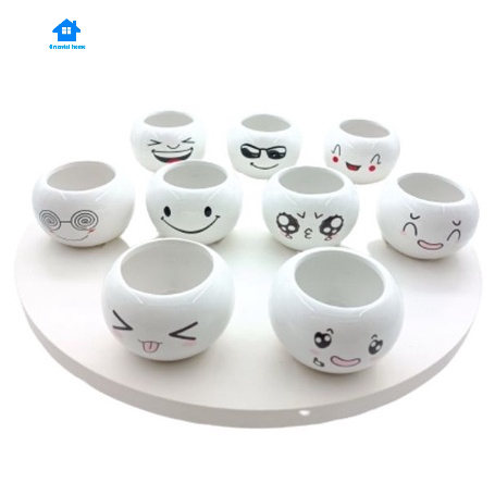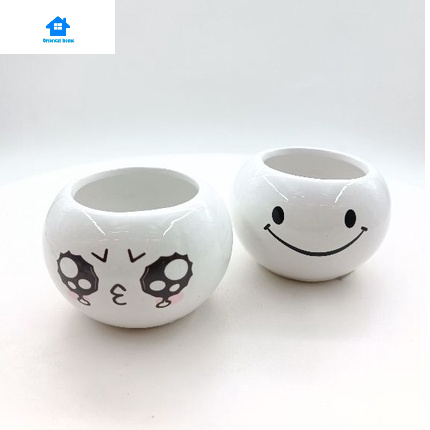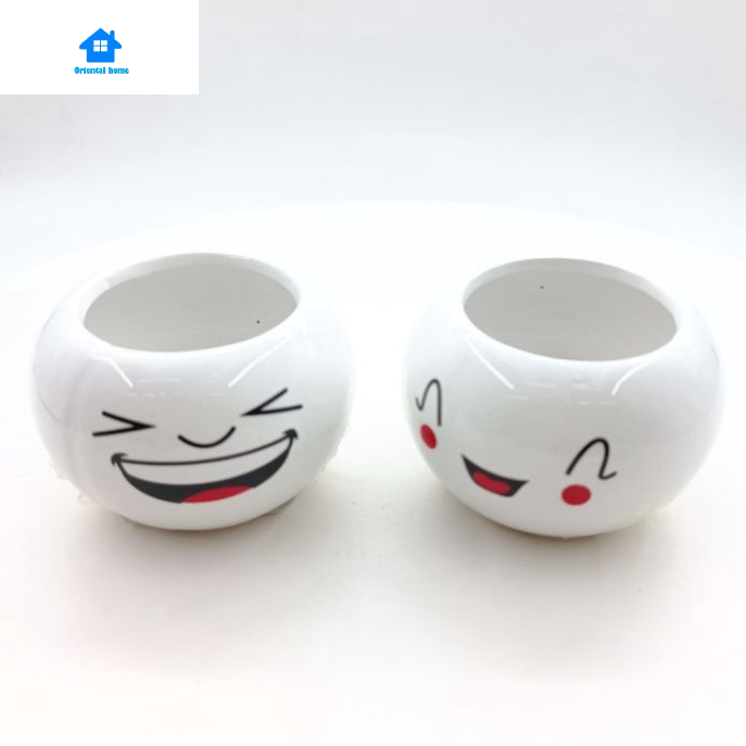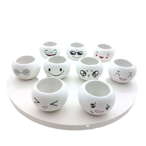 Lovely Cute face ceramic With Tray Flower Vase Home living Decortion Display Random(6x8cm)