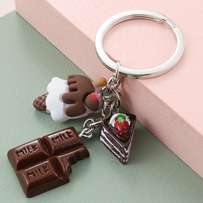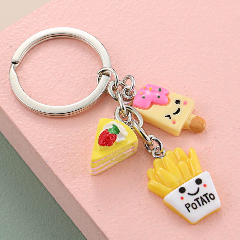 Lovely Dessert Keychain Afternoon Tea Key Ring Ice Cream Chocolate Cake Potato Food Key Chain Women Girl Gifts Handmade Jewelry
