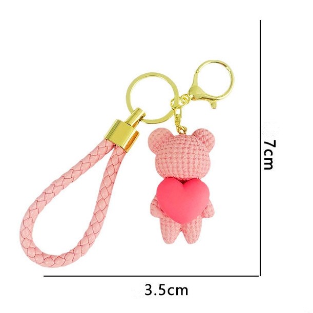 Lovely Runner couple keychain Peach heart braided bear keychain car keychain pendant bag pendant