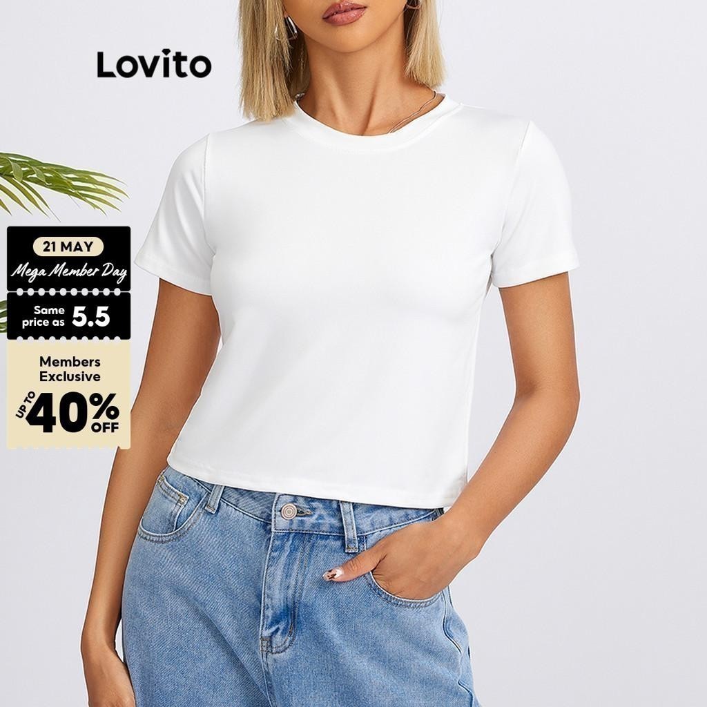 Lovito Women Casual T-Shirt Plain Crew Neck Basic Summer Tshirt for Woman L18X101