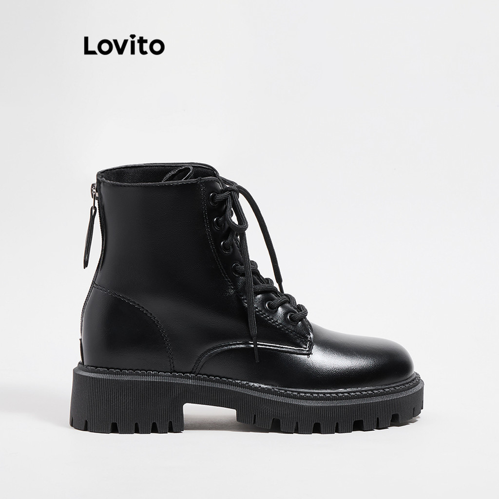 Lovito Women Casual Boots Plain Lace Up High Tops Thick Bottom Fashion Boot LFA43430