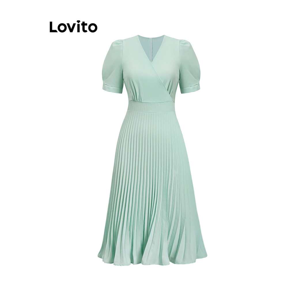 Lovito Women Casual Dress Plain Wrap Pleated Dress L80ED281 (Multi-color)