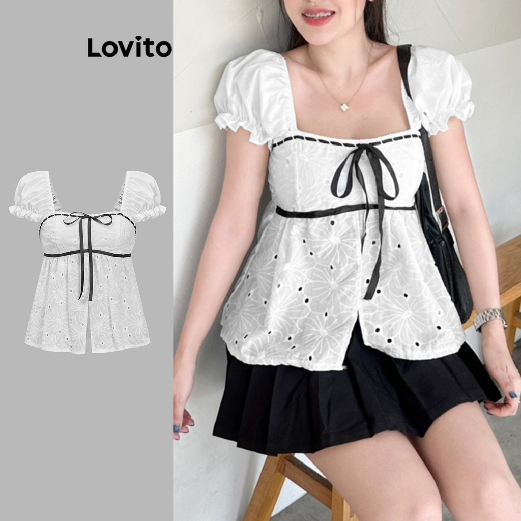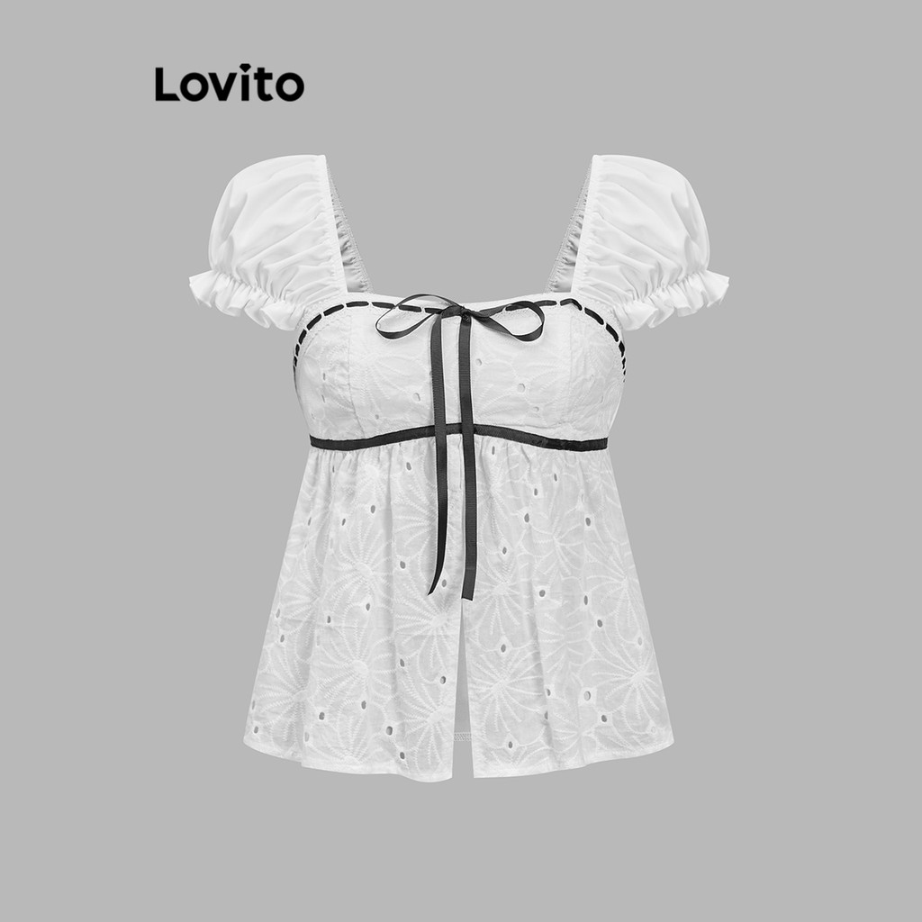 Lovito Women Cute Blouse Plain Lace Up Blouse L88AD206 (Multicolor)