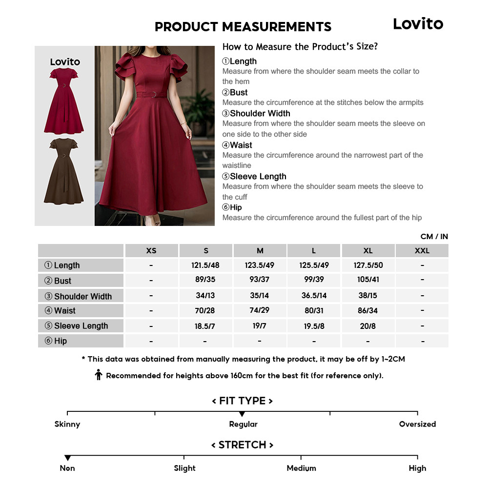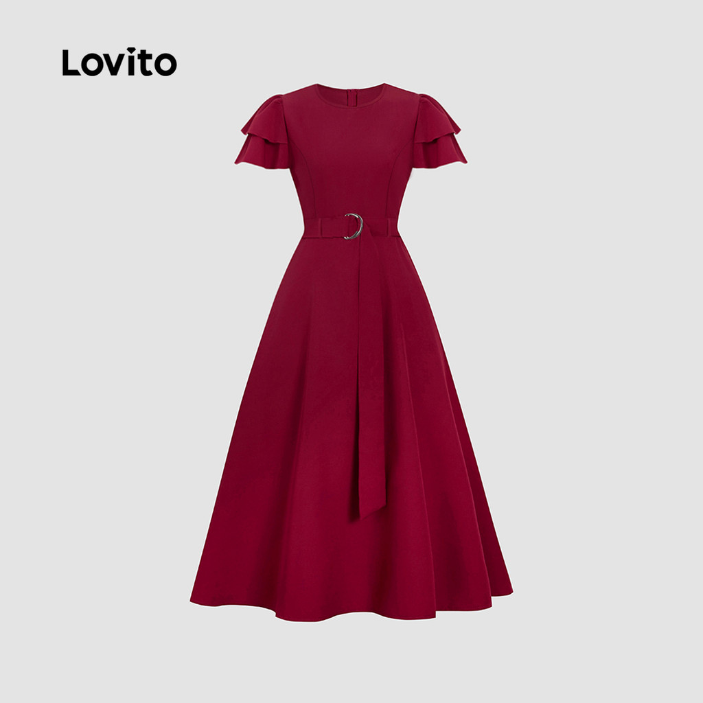 Lovito x Jenela Women Elegant Dress Belted Double Layer Spring/summer Wine Red Dress L155ED434