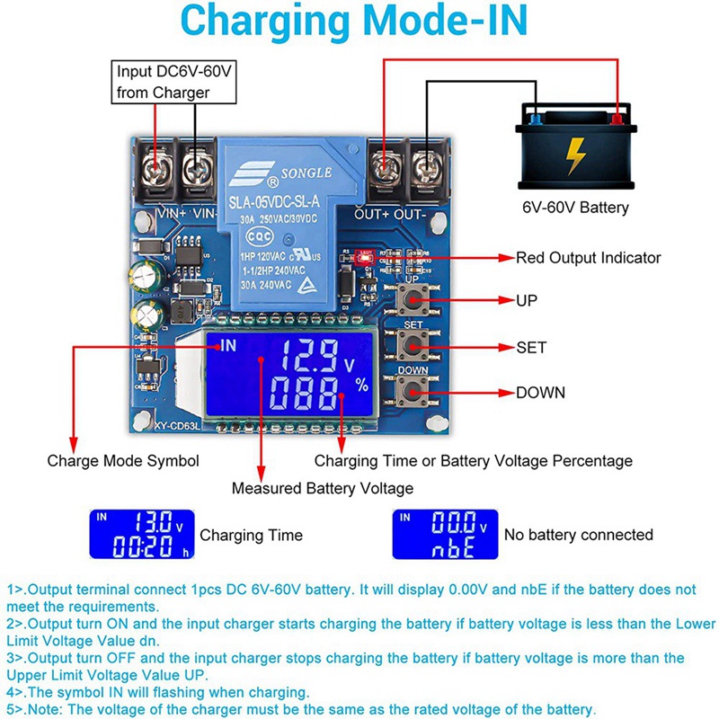 Low Voltage Cutoff, DC 6V-60V Low Voltage Protector Disconnect Switch Discharge Protector for Lead Acid Lithium Battery