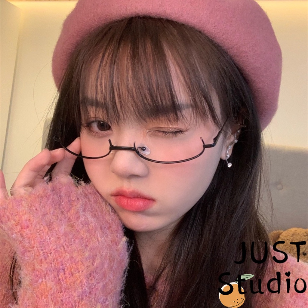 Lower Half Frame Glasses Frame Female Japanese Soft Cute Girl Glasses Metal Two-dimensional Animation Student Decoration Kawaii Girl