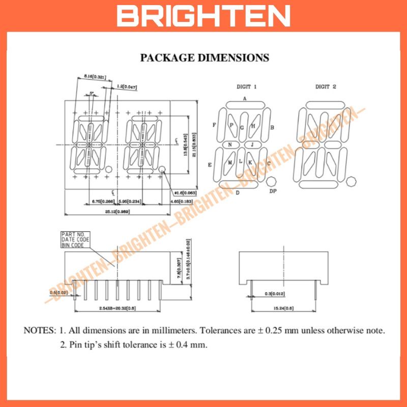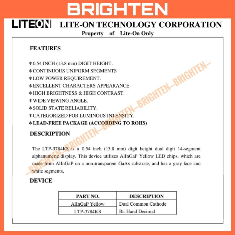 LTP-3784KS Dual Digit LED Alphanumeric Display Com. Cathode 14 Segments