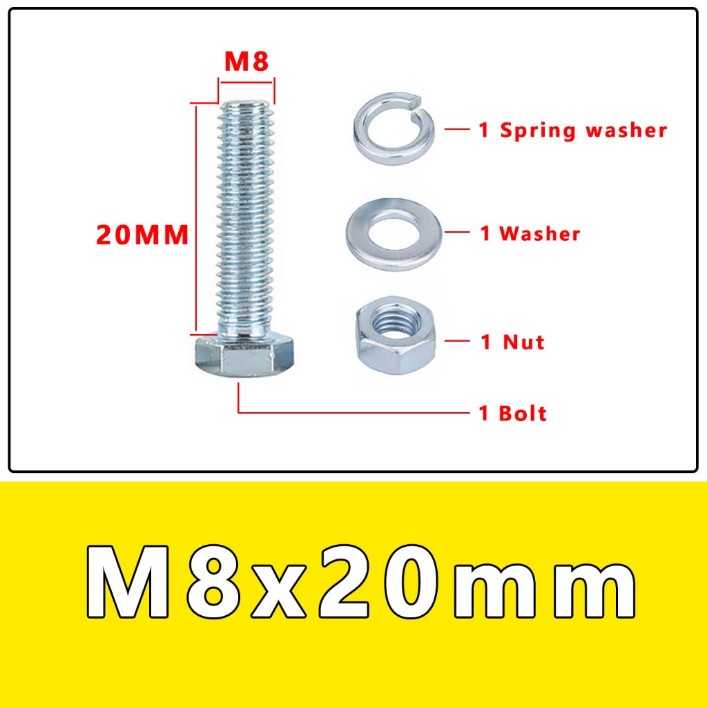 Lucky 10Set M6 M8 Car Bolt Dip Galvanized Steel Hex Cap Screw Bolt,Nut and Flat and Lock Washer Set