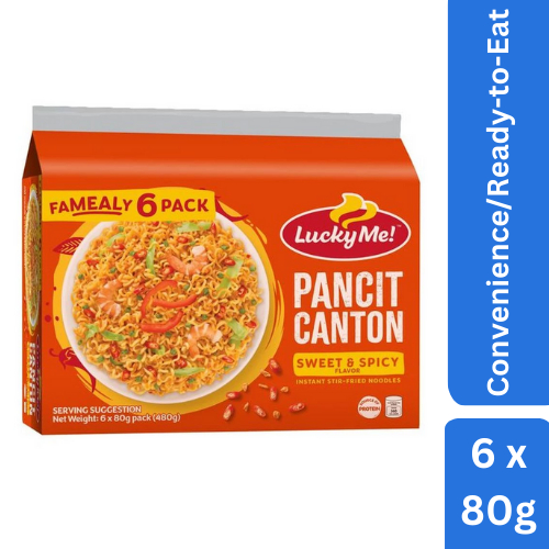 Lucky Me! Pancit Canton Instant Noodles Sweet and Spicy Multipack x 6 80g