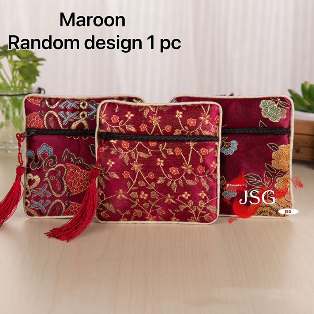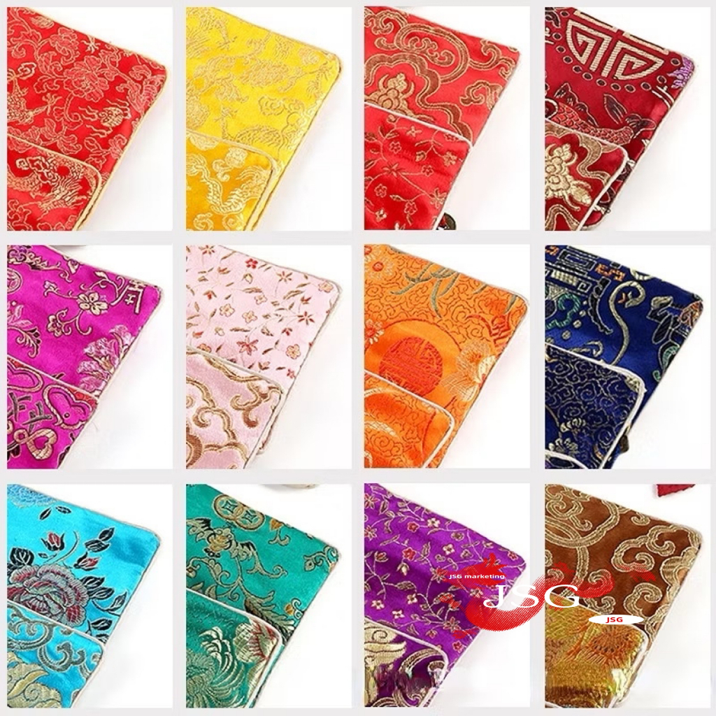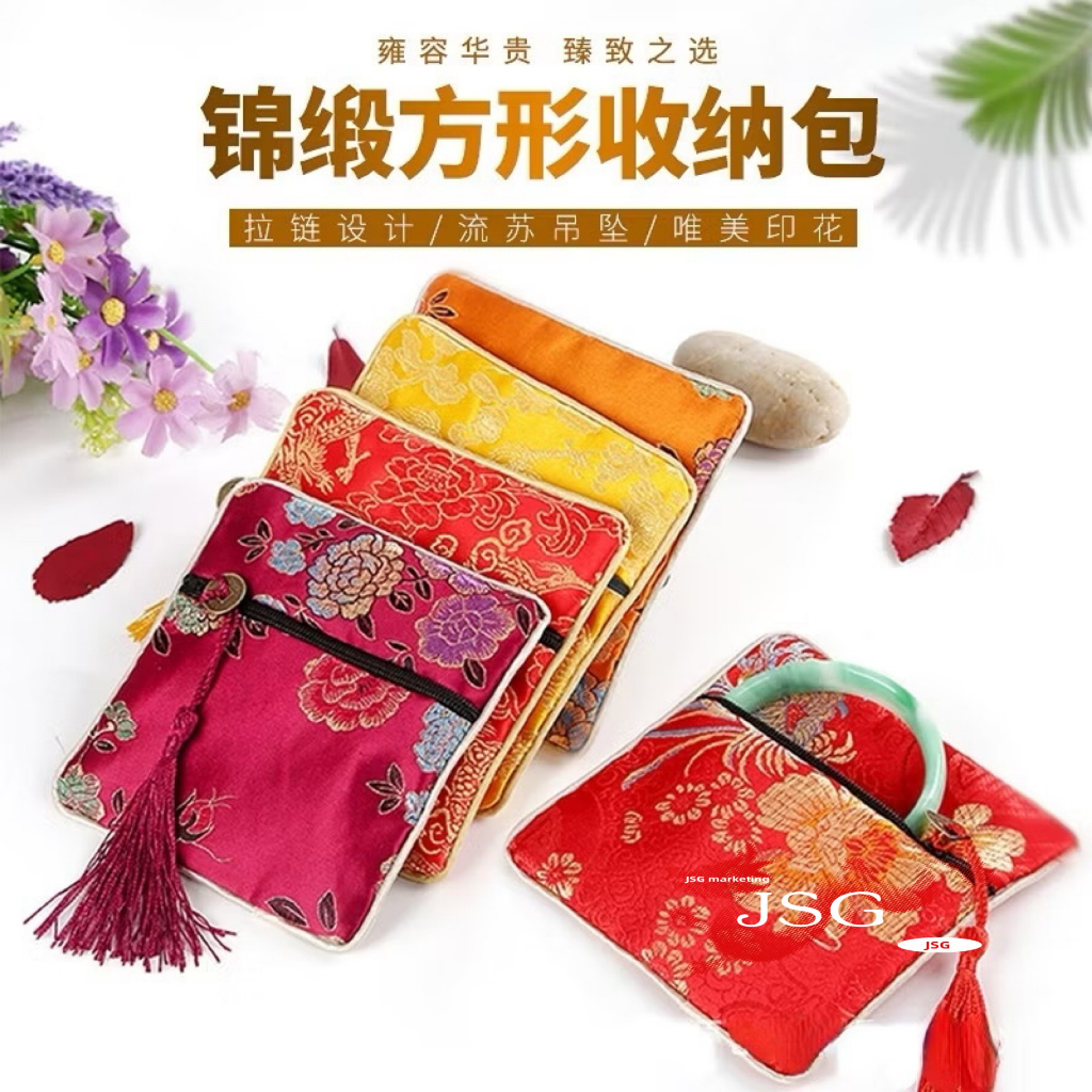 Lucky Wallet Embroidery Jewelry Bag Pouch Embroidered Flower Brocade Organizer Zipper Pouch Wallet