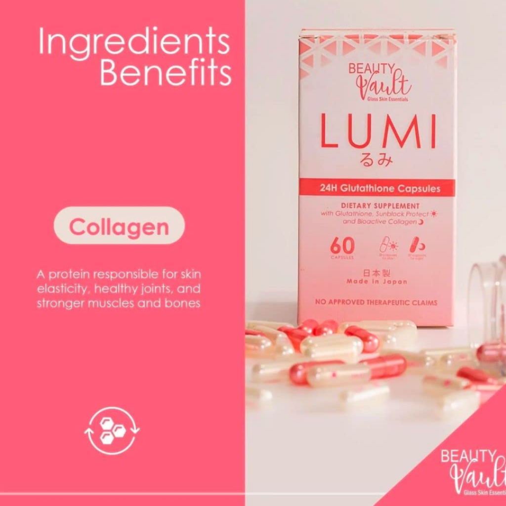 Lumi 24H Glutathione Capsules 60s | Whitening, Collagen, Anti-Aging, Skin Glow by Beauty Vault