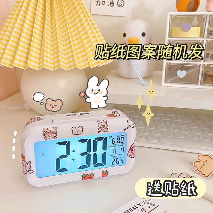 Luminous Alarm Clock Voice Control Bedside Digital LED Temperature Display Alarm Clocks Desktop Table Electronic Desk Watch Snooze Funtion USB Wake Up Alarm Clock