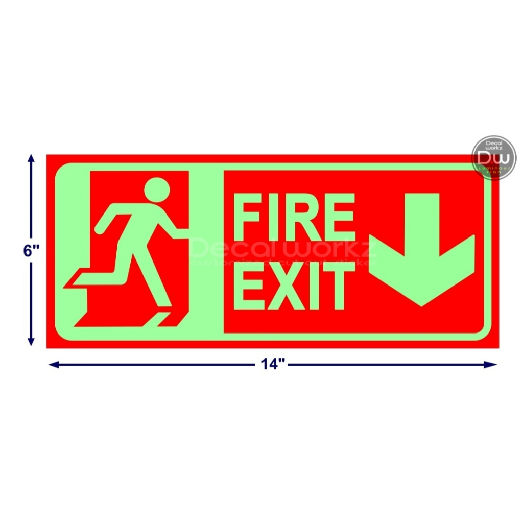 Luminous / Glow in the Dark Fire Exit Sign Red Background in 3mm Sintra.