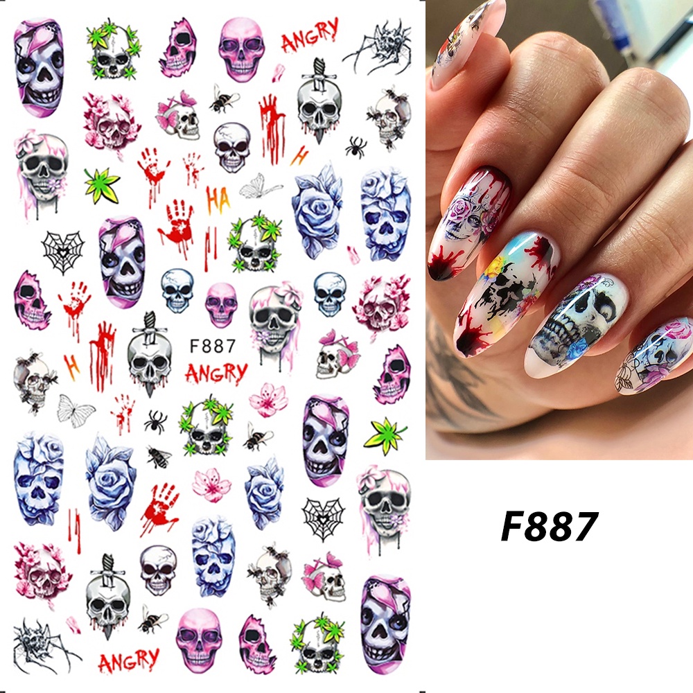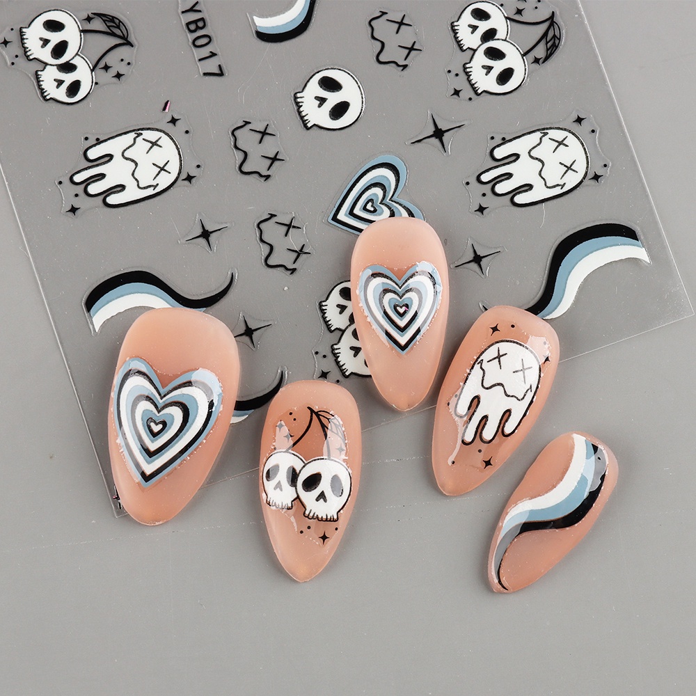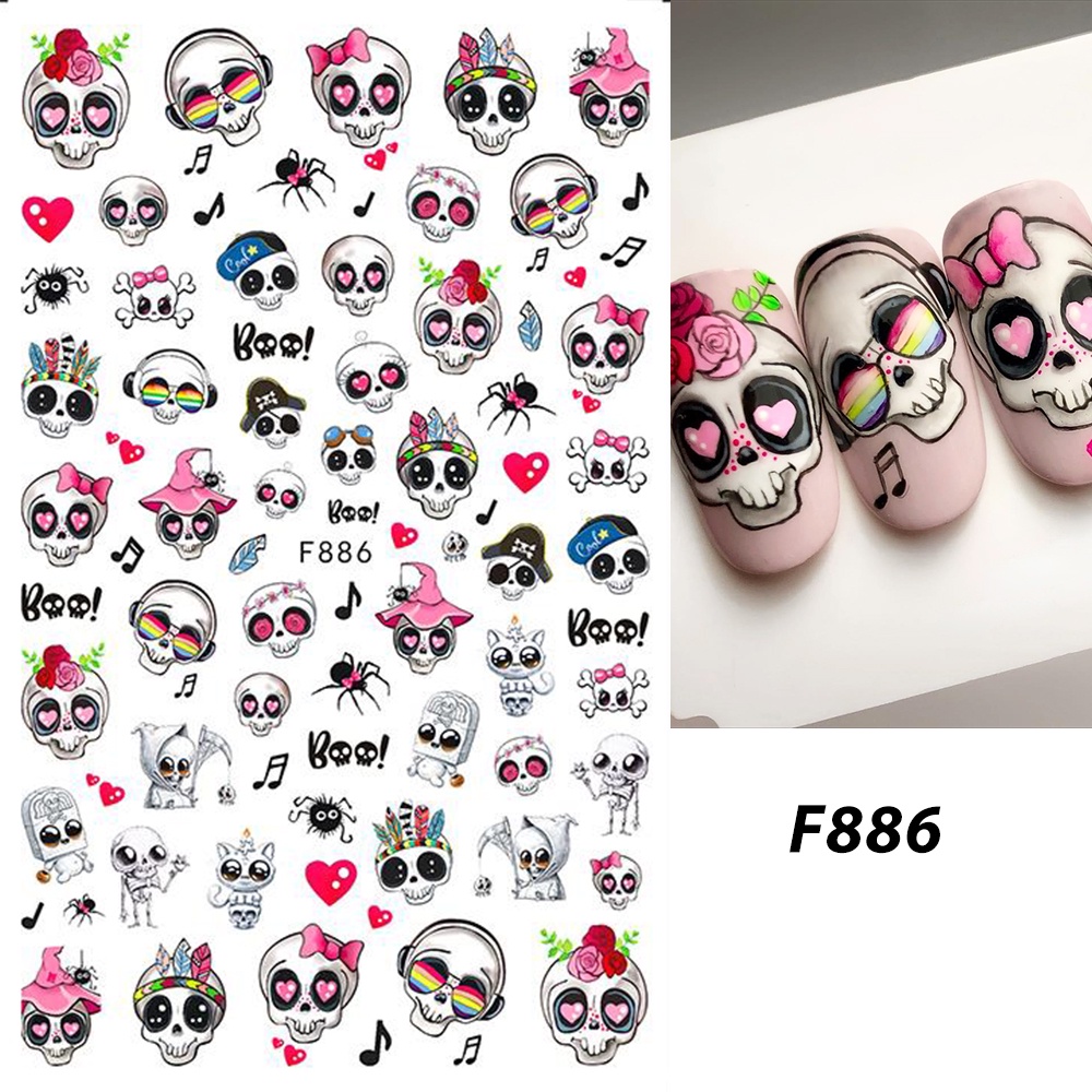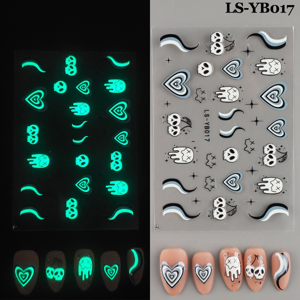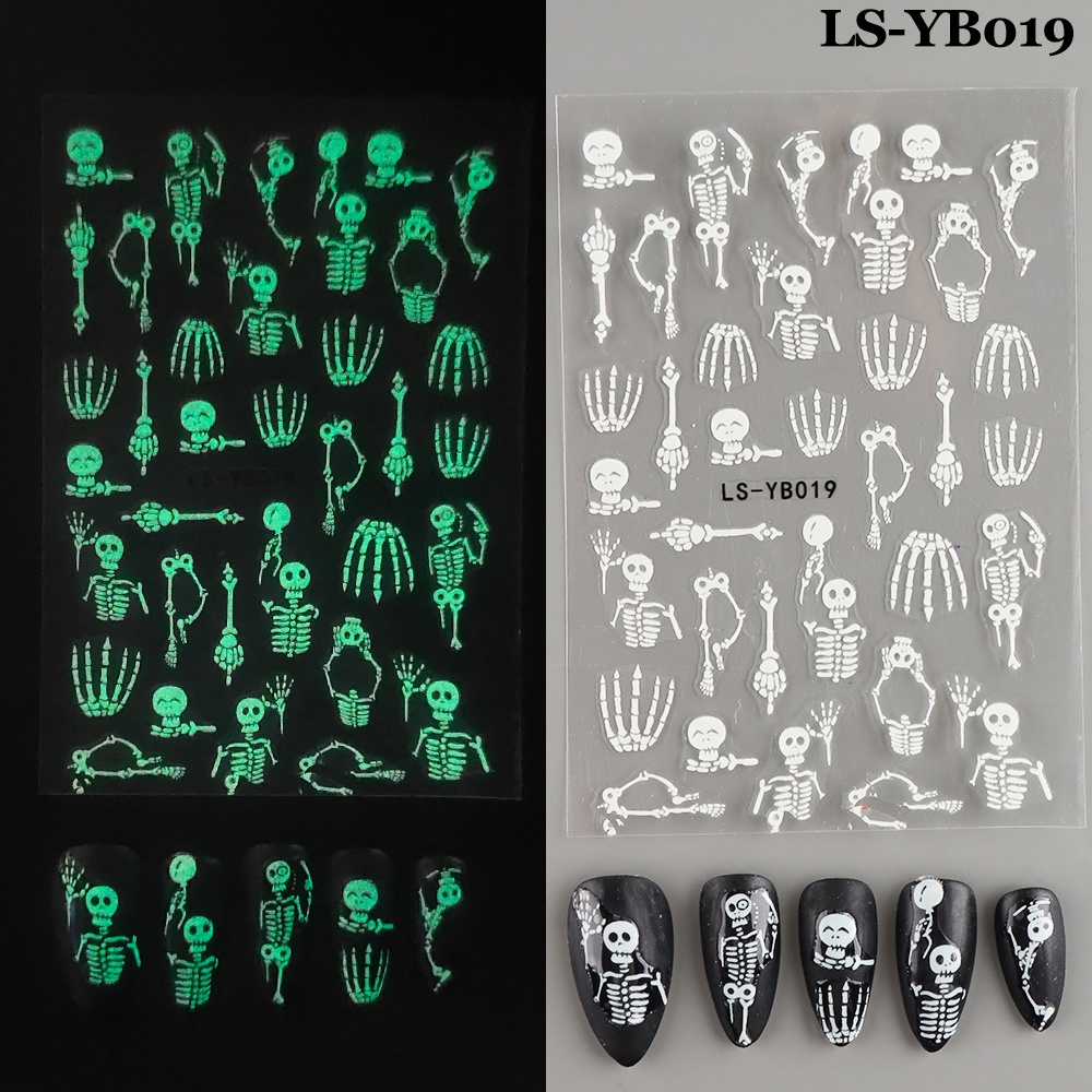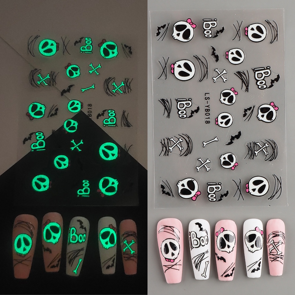 Luminous Nail Stickers Glow In Dark Halloween Nail Art Decoration Cartoon Skull Ghost Sliders Bones Spider Decal Tattoo