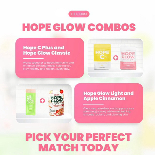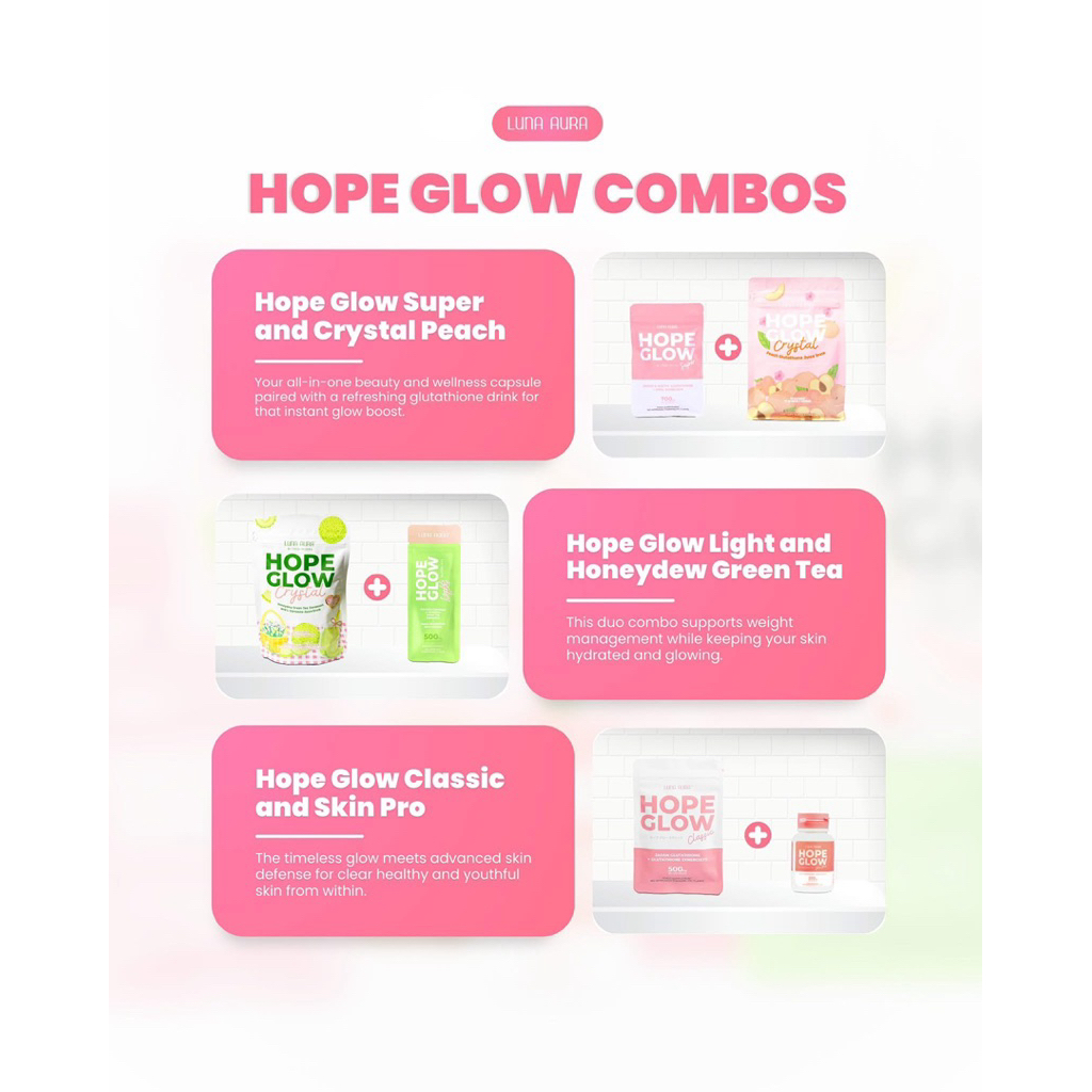 Luna Aura Hope Glow Crystal Glow Glutathione Super Biggie Classic Mini Skin Pro Light