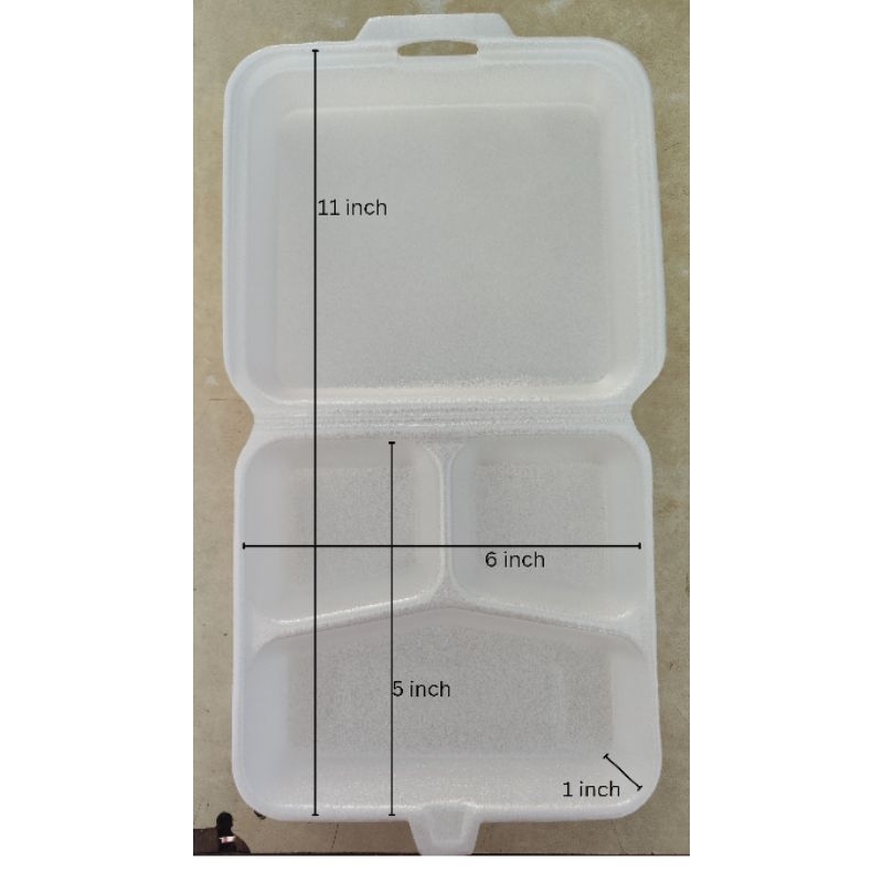 50 pcs - Lunch Box 3 (LB3, LB-3) - Food Styro, Disposable Meal Box, 3 divisions, Bento Box