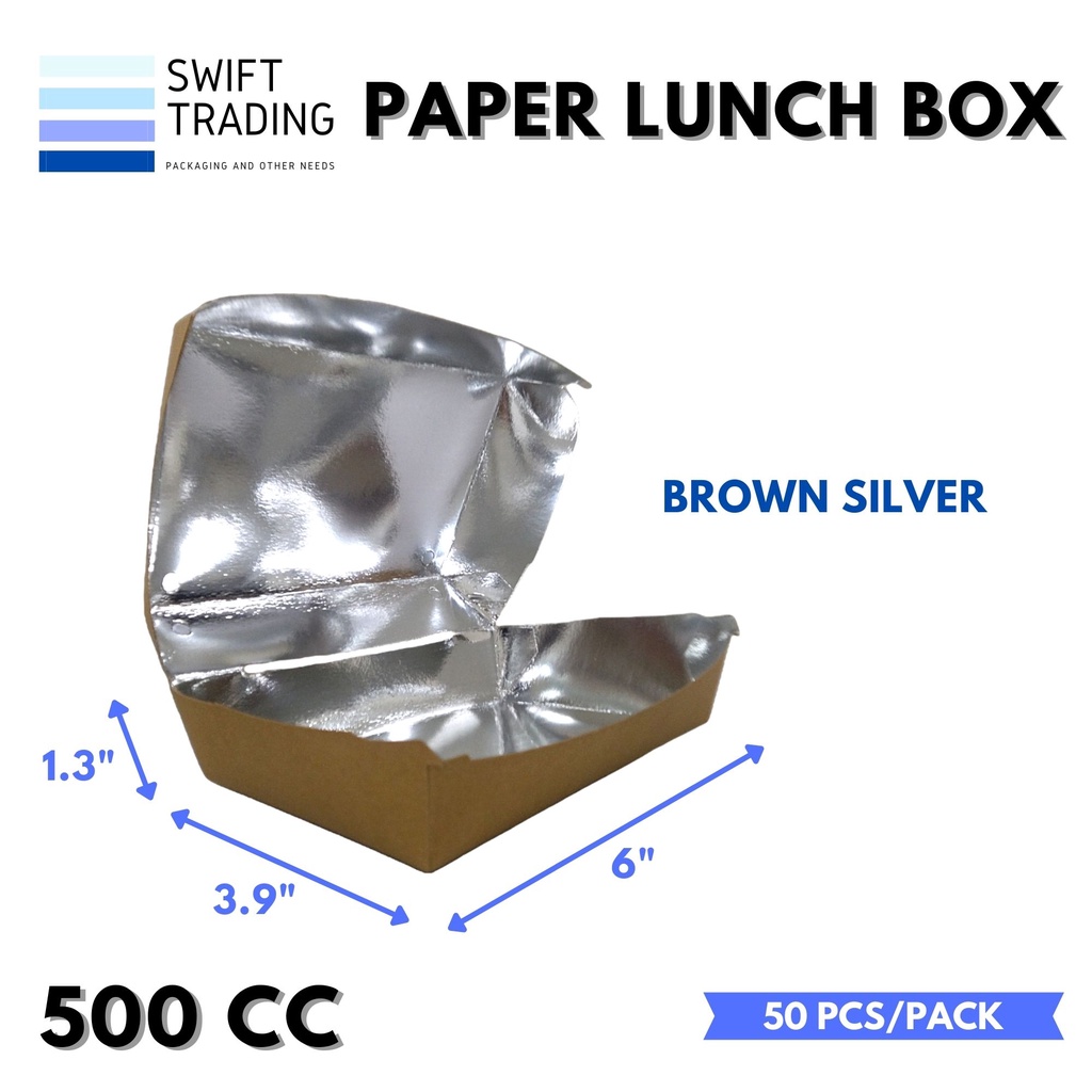 Lunch Box Medium Paper Clamshell Takeout box 500cc 50pcs Brown Coated / Brown Silver Eco-Friendly