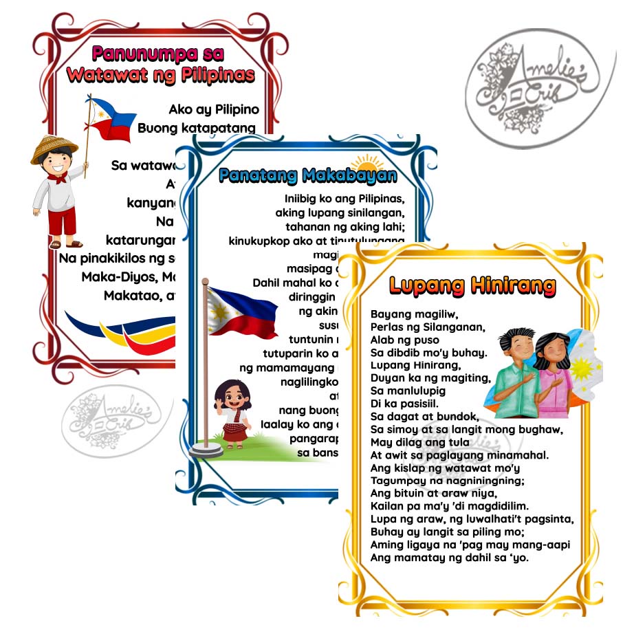 Lupang Hinirang, Panatang Makabayan, Panunumpa sa Watawat, AP Laminated Educational Charts - A4 size