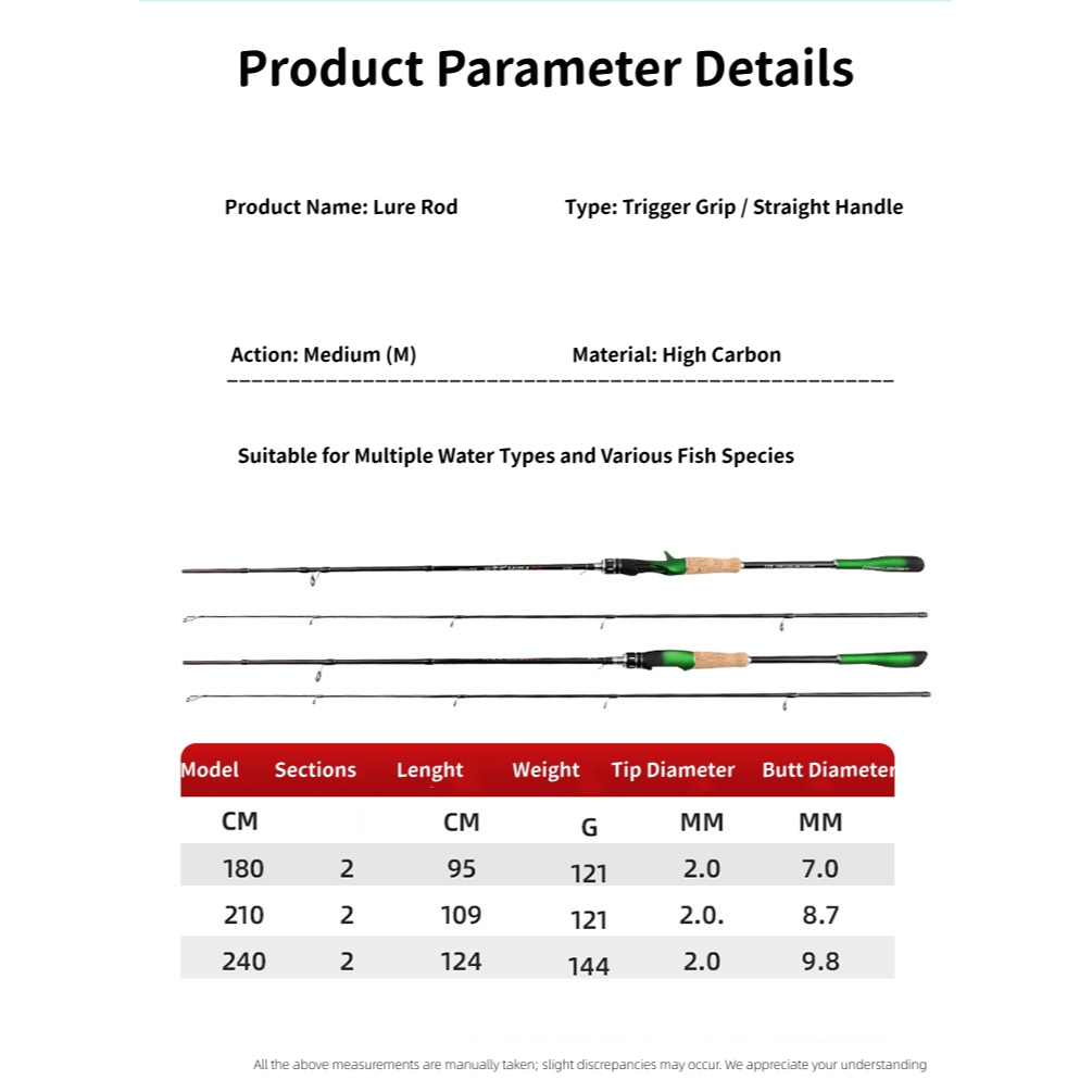 Luron Export Carbon Fiber Fishing Rod Wholesale - Straight & Pistol Grip, Medium Action, Heavy-Duty Sectioned Rod for Big Fish, 1.8/2.1M All-Water Lure Rod for Trevally, Snakehead