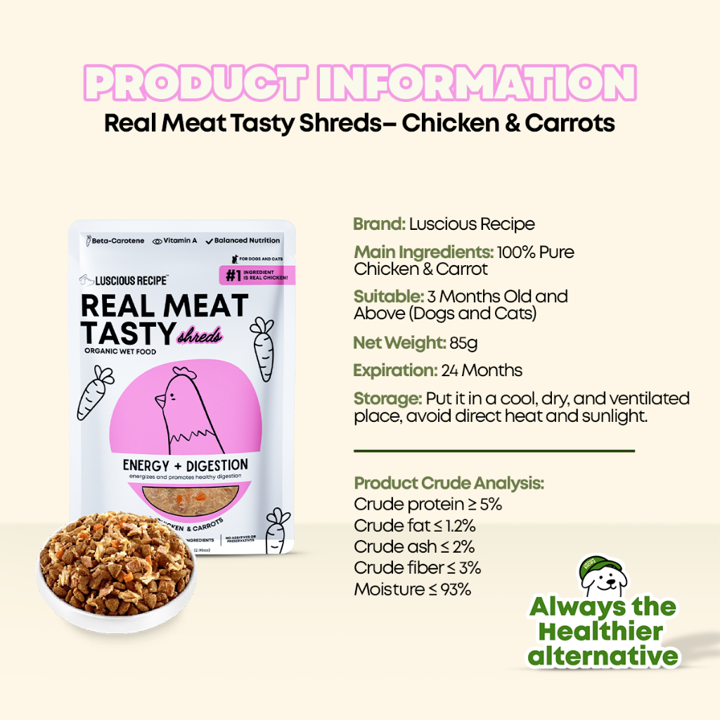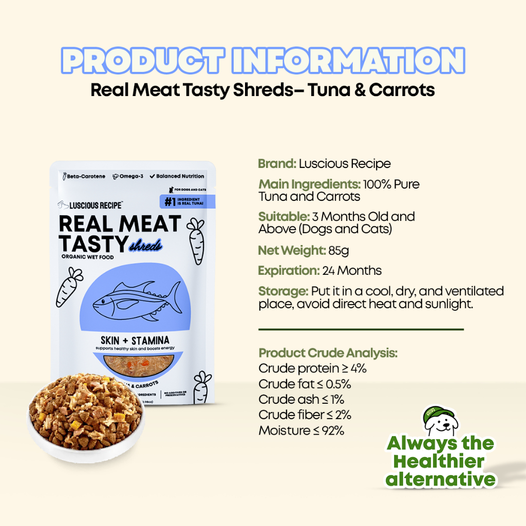 Luscious Recipe Real Meat Tasty Wet Food Tuna + Carrot Pure Meat Dog Wet Food Cat Wet Food 85g