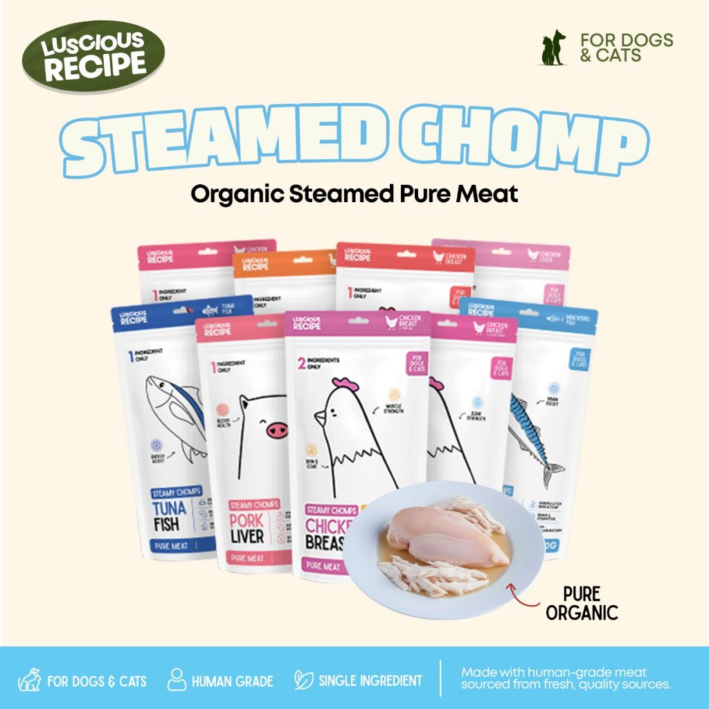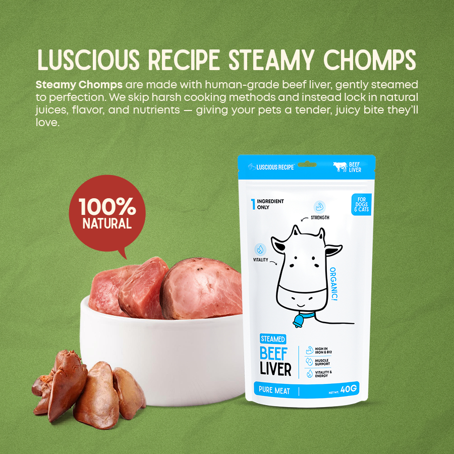 Luscious Recipe Steamy Chomps Pure Meat Beef Liver Steamed Chomps For Dogs and Cats Food Toppers