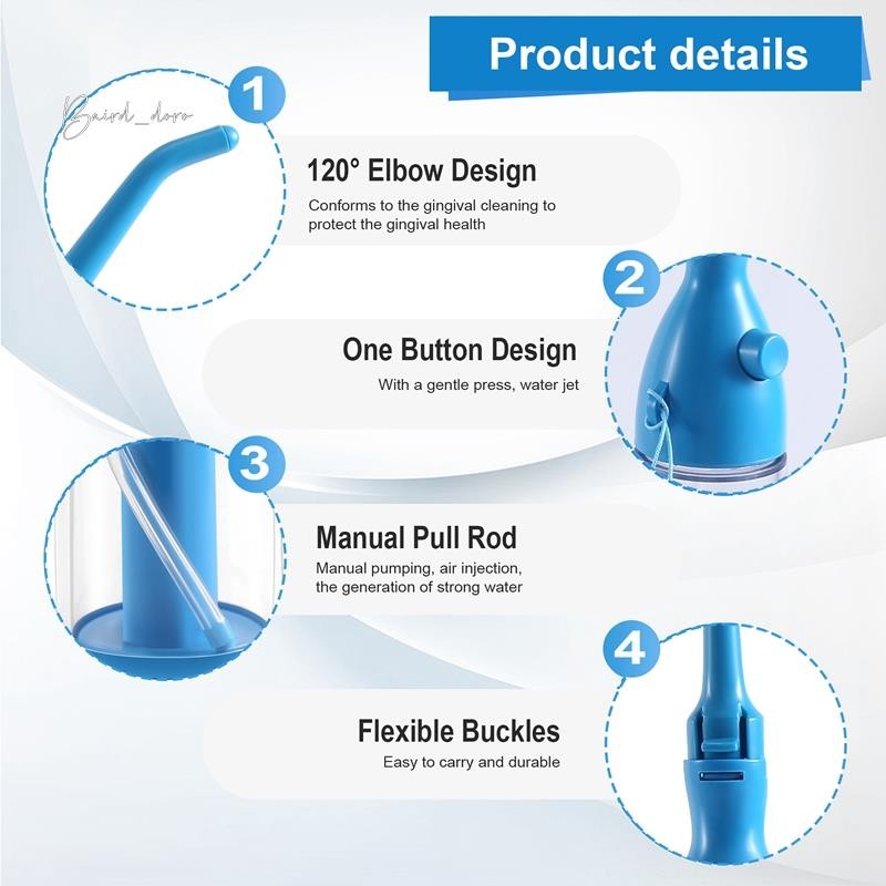 【bairddoro】New Portable Oral Irrigator Clean the Mouth Wash Your Tooth Water Irrigation Manual Water Dental Flosser No Electricity Abs
