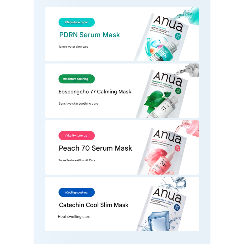 [ANUA] Mask Pack 4 Types 5+1 Sheets | Heartleaf 77 | PDRN Serum | Peach 70 | Catechin Cooling